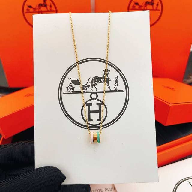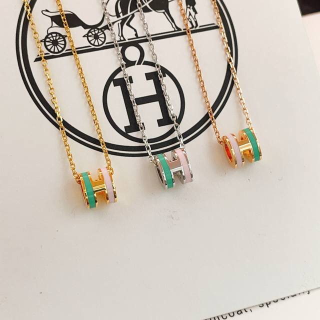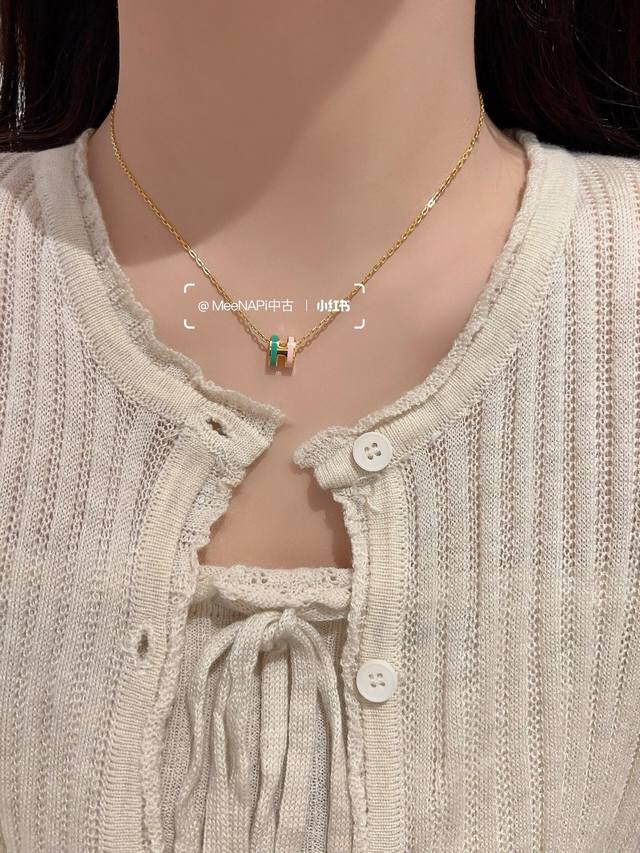 Hx114 DDD He Mes' latest gold, green, and pink mini necklace is made of the same brass material as the original. It looks great in photos and has a unique design, making it a worthwhile purchase from the high-end handcrafted series.