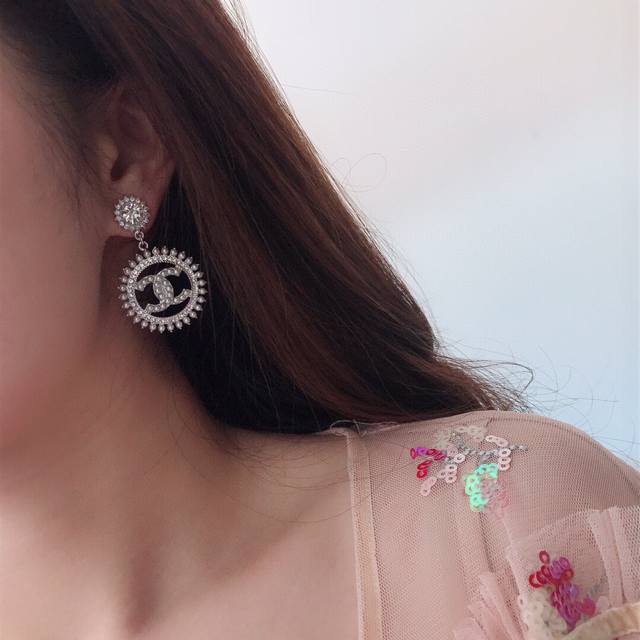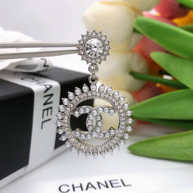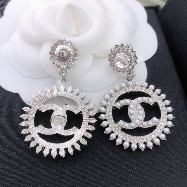 ID Xed0169 DDD Cute girls should be powerless against polka dots, right? These new Chanel-style round silver pearl earrings easily create a sweet look! A pair of cool sunglasses, a vintage bag, bright high heels, and a bold red lip