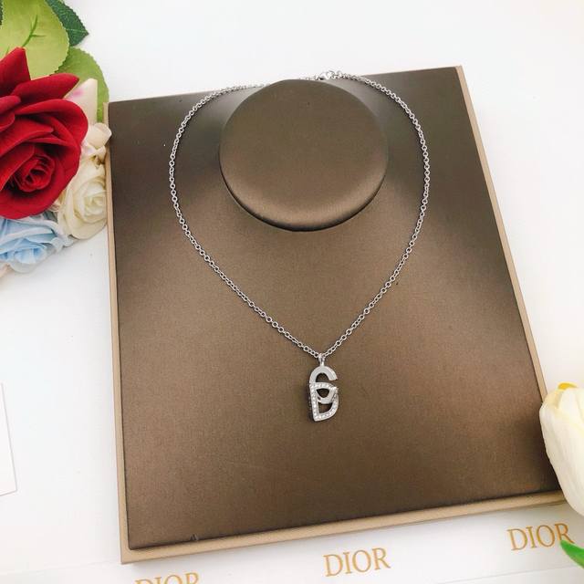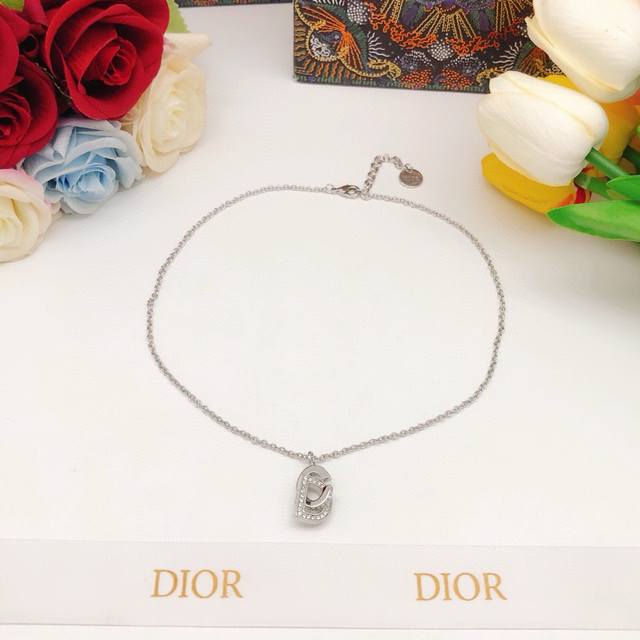 Item No. Dxl0180 Dio* Latest Silver Cd Letter Necklace with Diamond Inlay, Batch