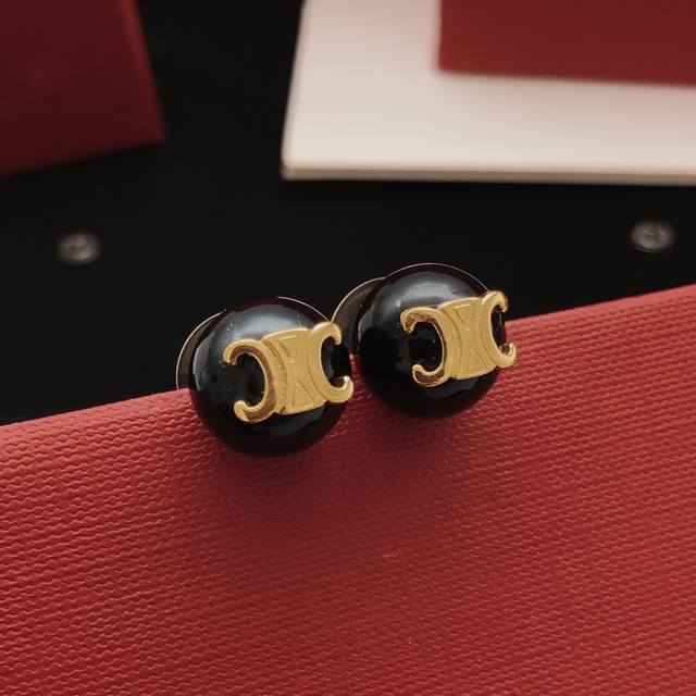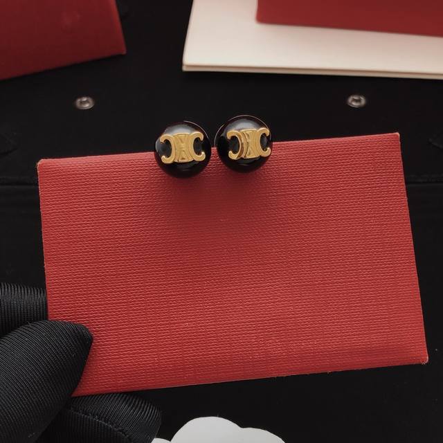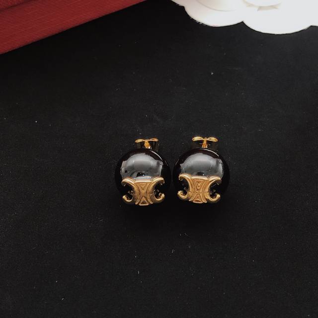 / Item No. Sled0041 Celin* Latest Black Pearl Stud Earrings, Batch Z, Brass Materi