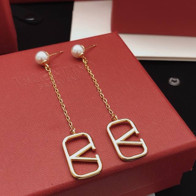 Hl92 Valentino fashion all-match hollow black oil-drop oval pig nose glossy V le