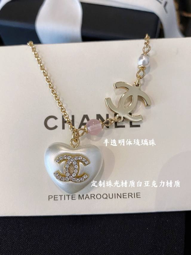 Item No. Xxl0120 DDD Ch Nel Gentle Peach Heart Girlish Series DDD Pearl Heart Pink Glass Element DDD Ch Nel White Peach Heart Glass Bead Necklace DDD Super beautiful glass bead pearl chain, smooth Cc polished DDD Two-section adjustable ring, can be used as a necklace, sweater chain, long chain DDD Cnc-cut heart, pearly white, original acrylic material, not resin, super beautiful must-have, incredibly sweet, specially customized heart, three-dimensional side edges, the recessed parts are also very well done, the shape is very satisfactory DDD