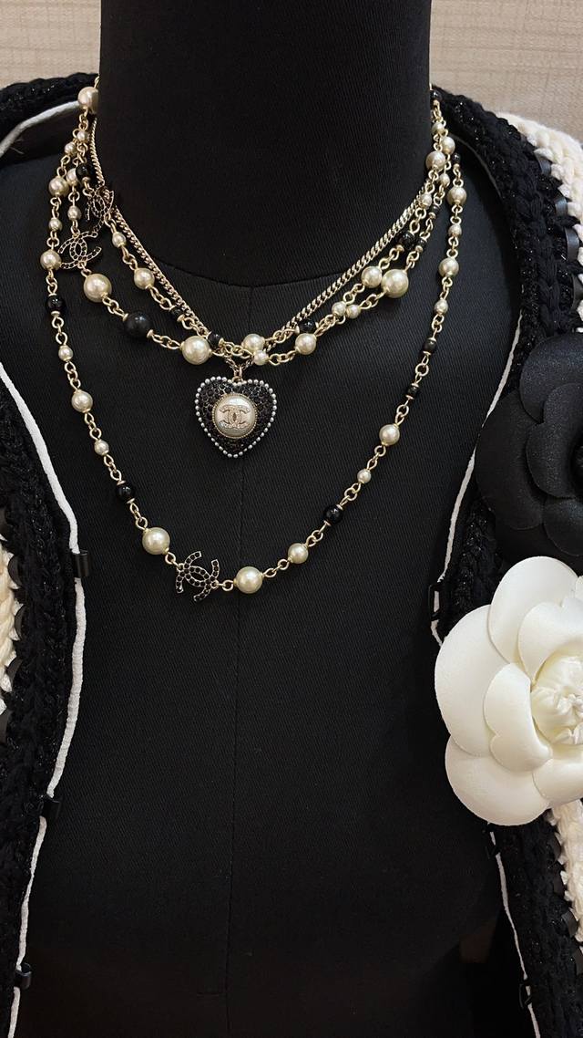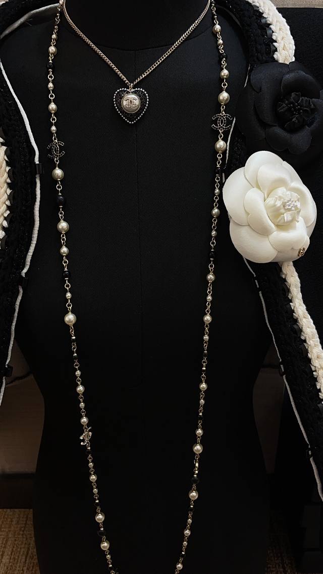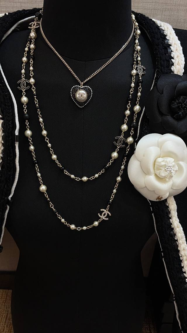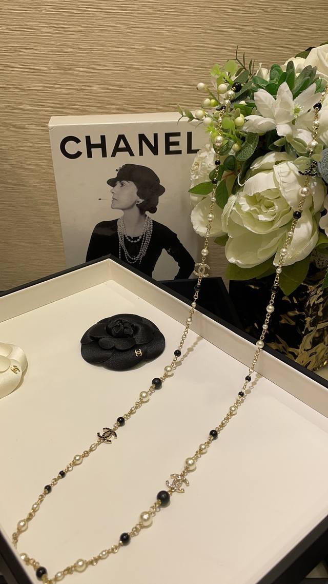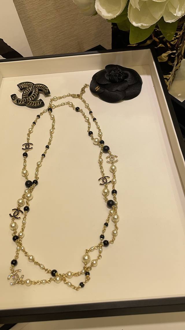 Item No. Xxl0834 DDD 22A New Black and White Pearl Rhinestone Double C Long Necklace Sweater Chain DDD The black and white panda color scheme exudes a retro, glamorous, and girlish feel DDD A must-buy pearl sweater chain for Chanel girls, love the details DDD Everyday wear, adds a touch of sophistication, a collector's item DDD Zp version, custom resin pearl, Czech rhinestone material DDD