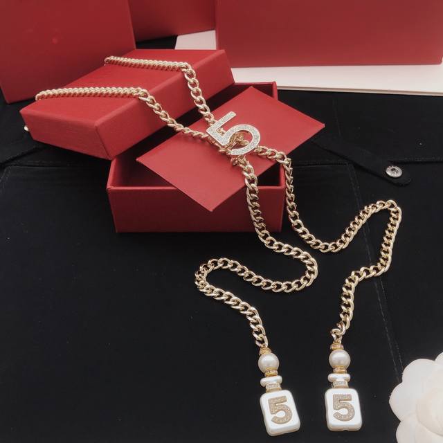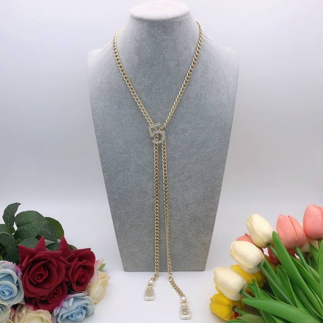 Ch*Nel latest style 5-shaped perfume bottle waist chain sweater chain, same as Zp brass material