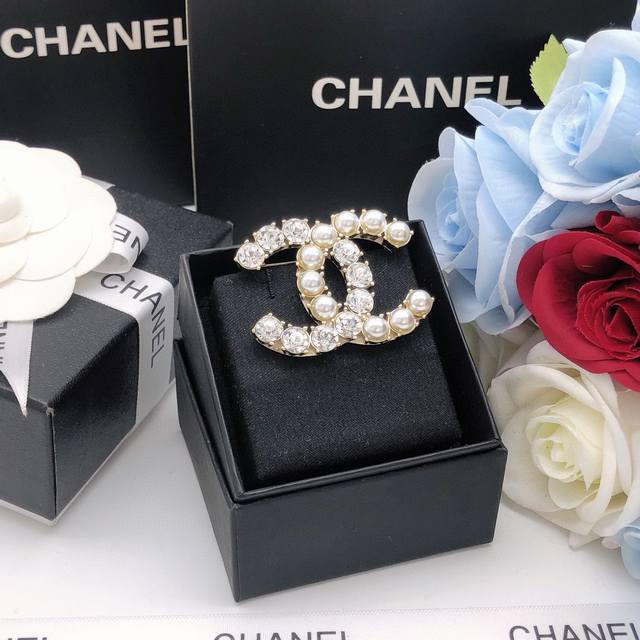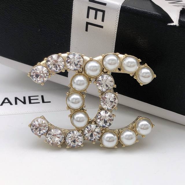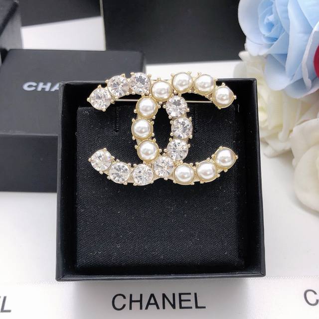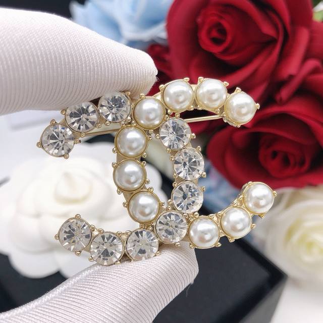 Item No. Xxz0028 DDD C brand round diamond and pearl Cc edge diamond and pearl brooch, same material as the autumn and winter must-have brooch, pearl and rhinestone spliced brooch, restocked! DDD