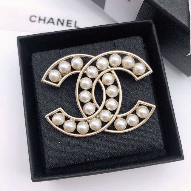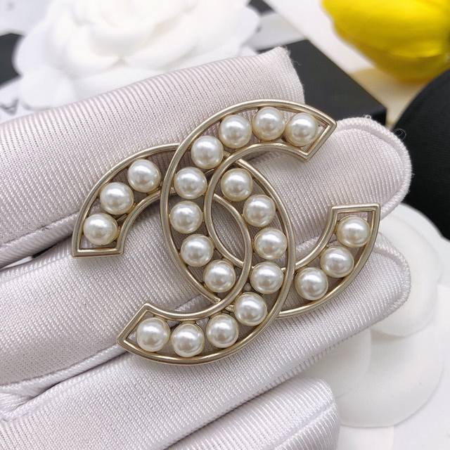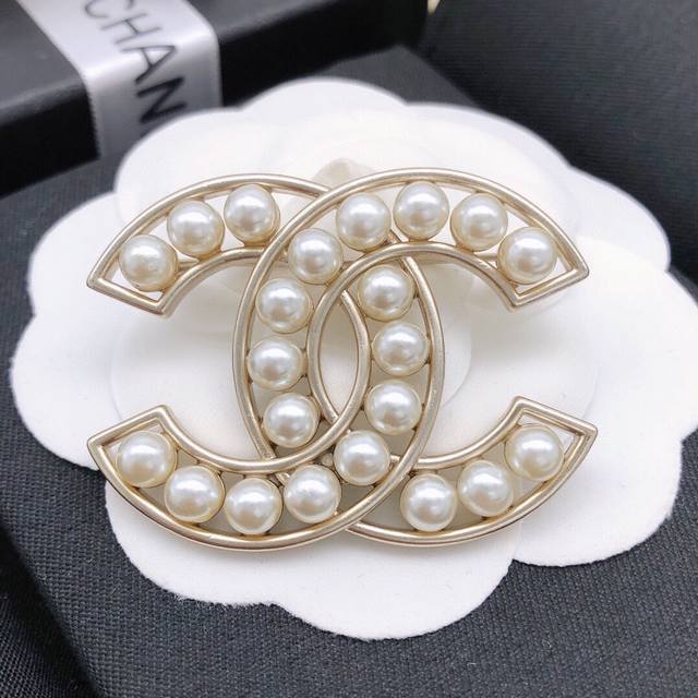 Openwork all-pearl brooch from Chanel. Brooches with lots of pearls are sure to exude elegance! No doubt about it