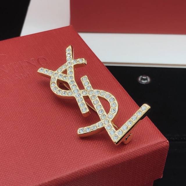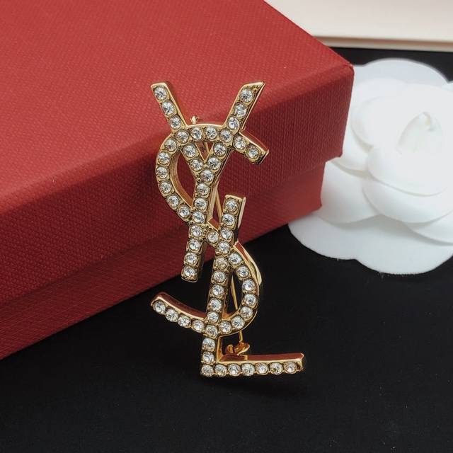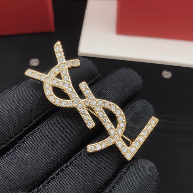 Yvessaintlauren* Latest diamond-encrusted brooch, identical to Zp, made of brass.