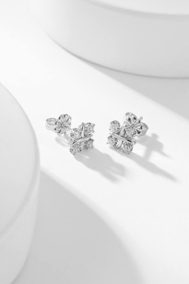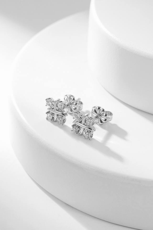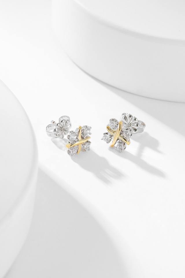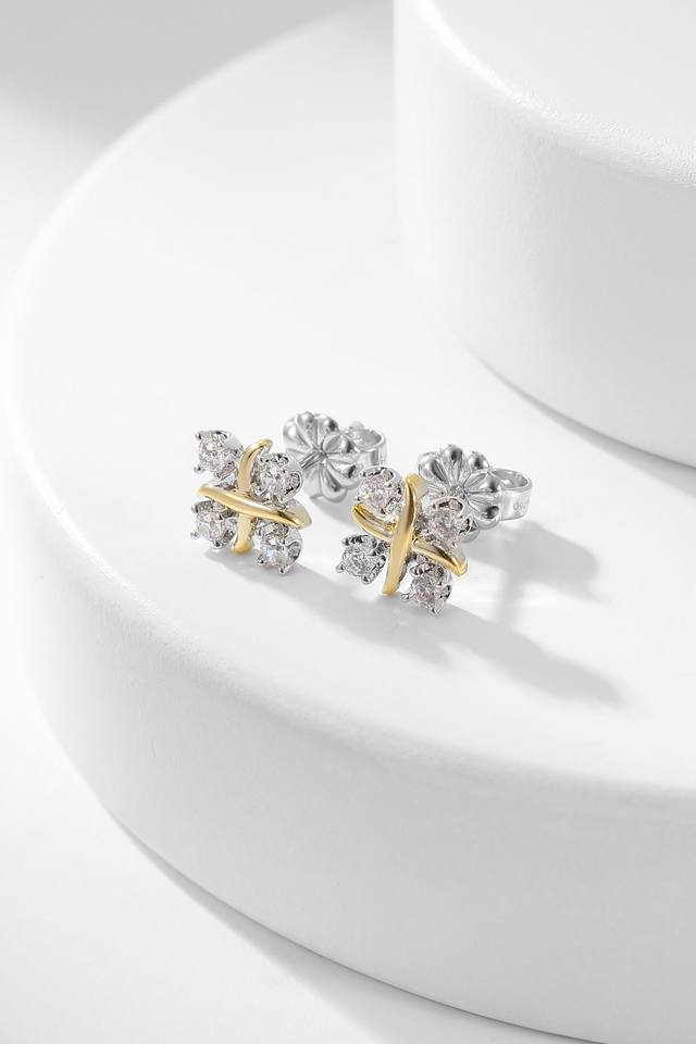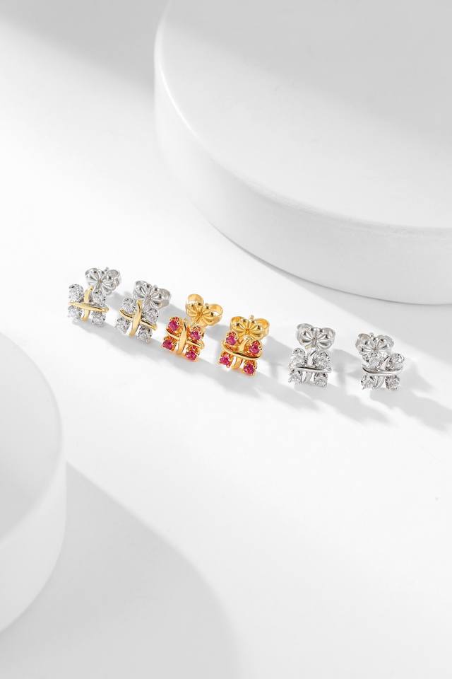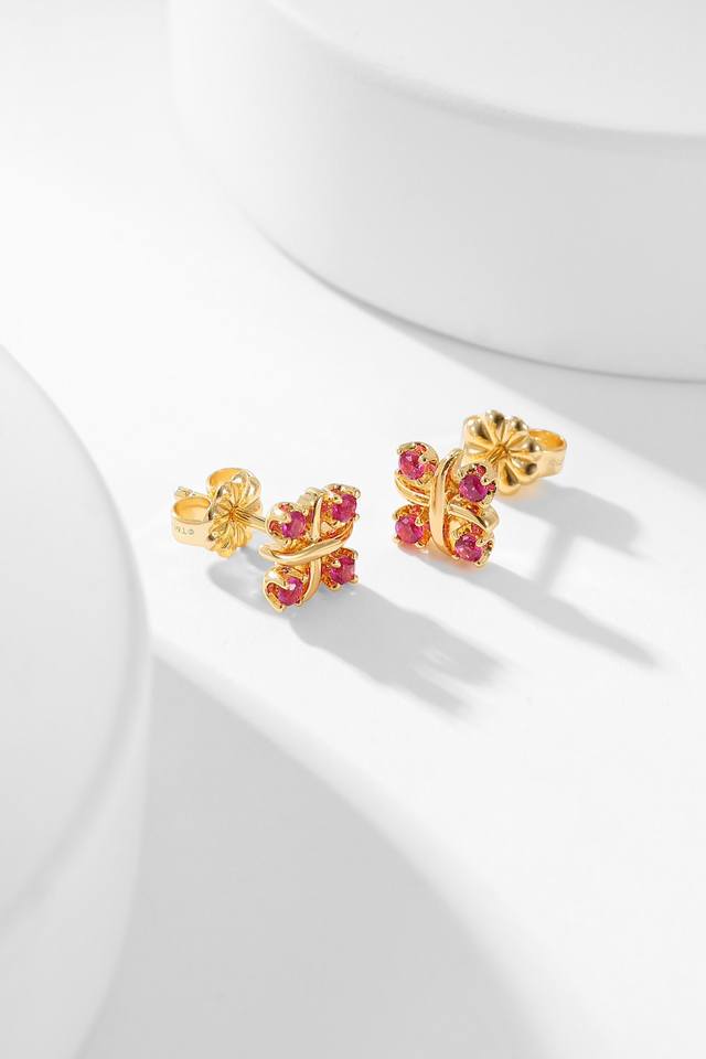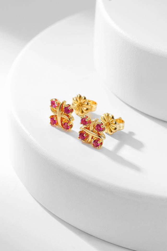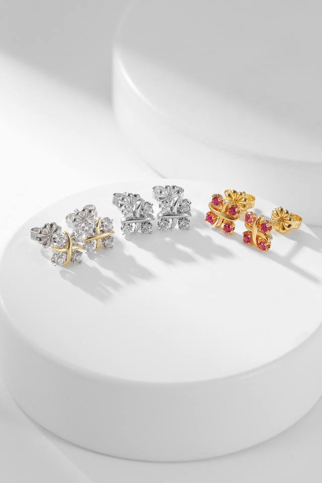 presents new cross stud earrings, set with simulated rubies, featuring an X symbol interspersed among diamonds and colored gemstones