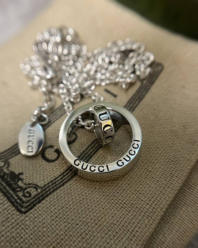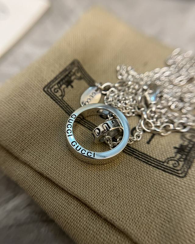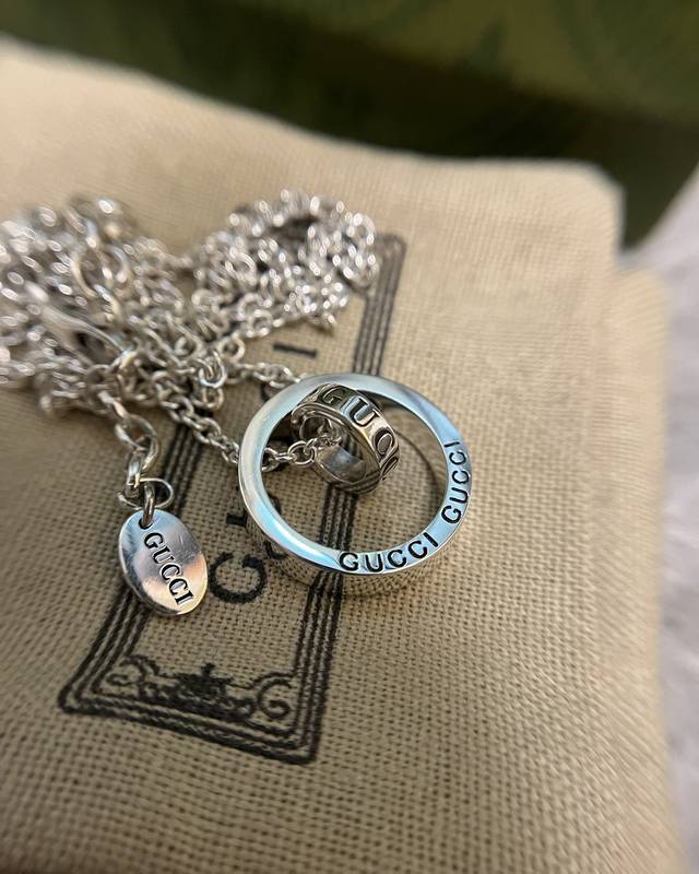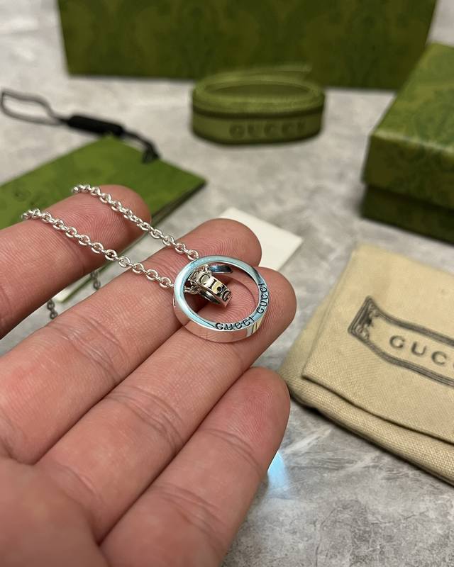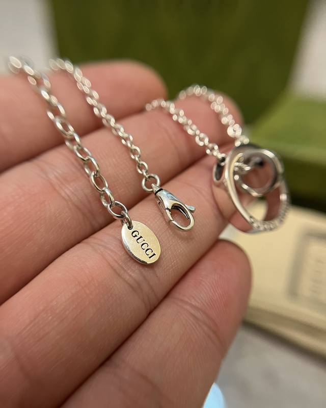 / Lucky Double Ring Necklace Sterling Silver Interlocking Double Ring Design Fashi
