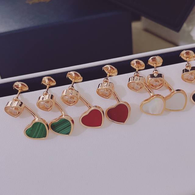 Xiao*Ha Pipi Y Hearts series peach heart earrings, new style, also a celebrity style~~ The connection of two peach hearts with rolling diamonds gives it a more elegant look. We offer consistent Z-grade quality, made entirely of V gold plated with 1mm thick gold. Compared to the previous long style, these earrings are more delicate. Colors include natural white mother-of-pearl, natural carnelian, natural black agate, and natural malachite with rose gold