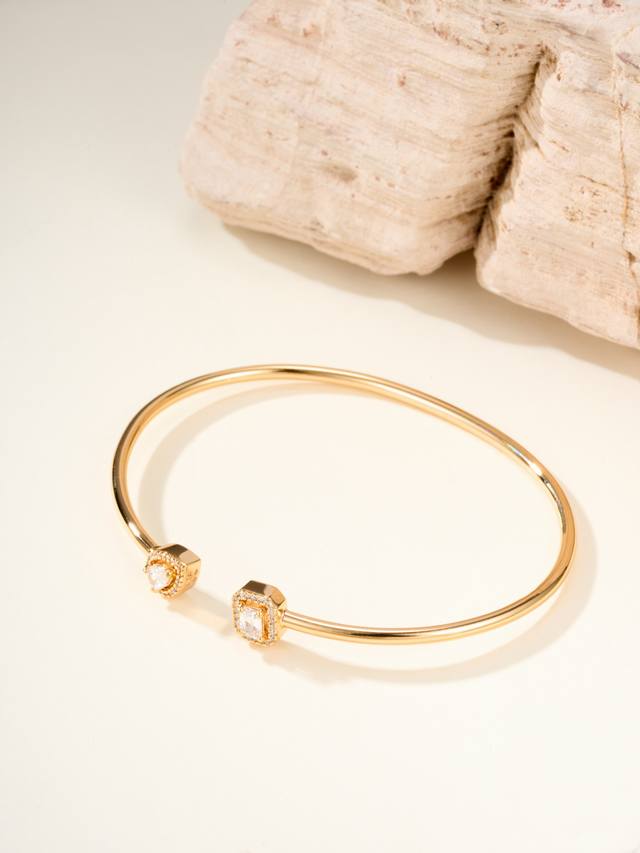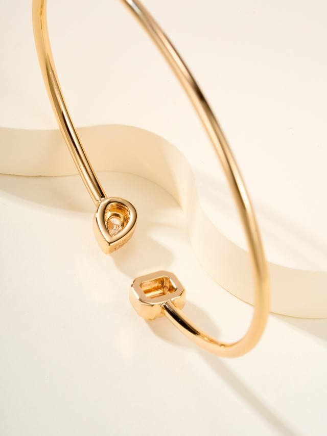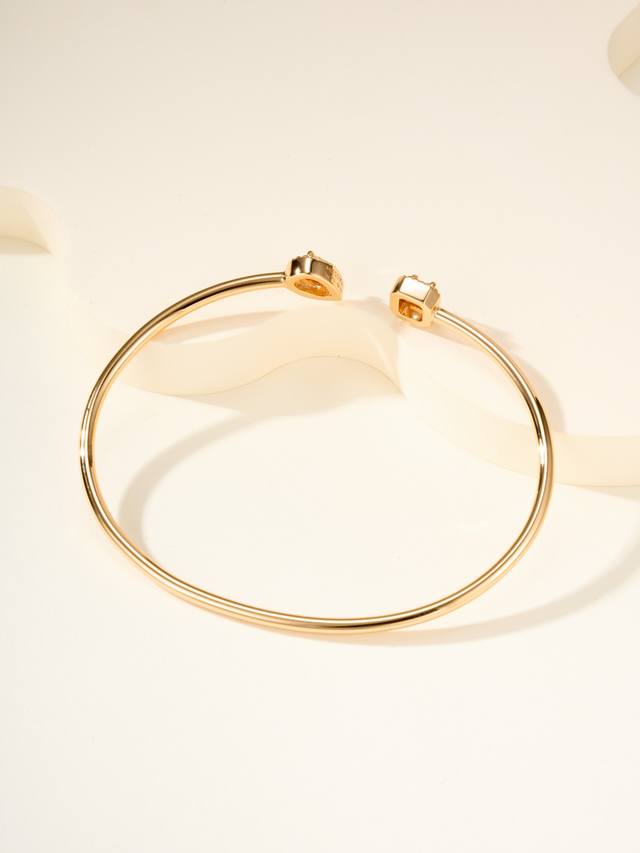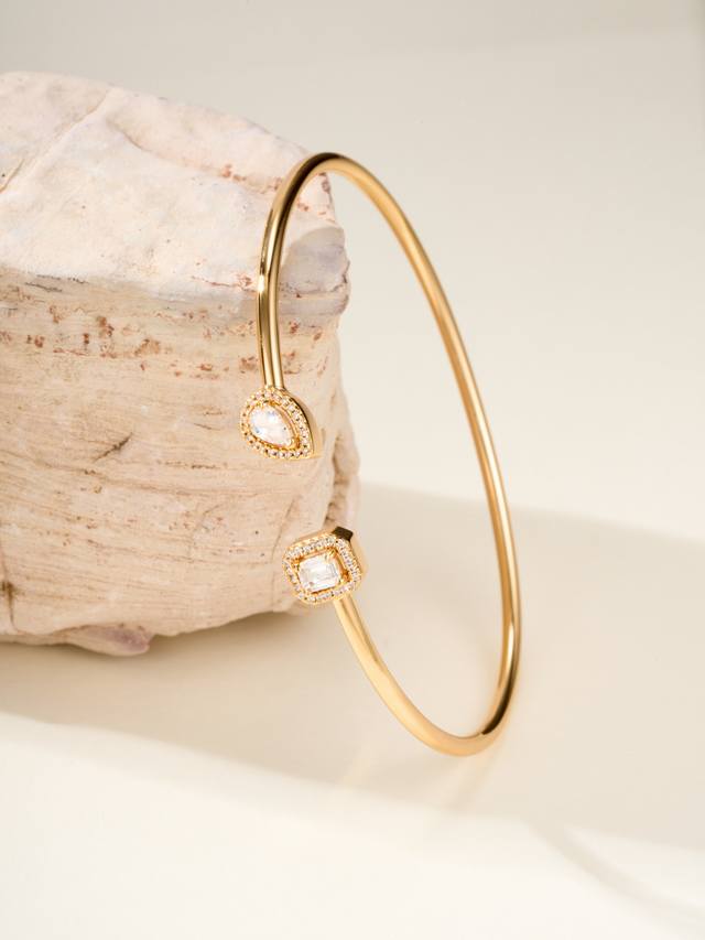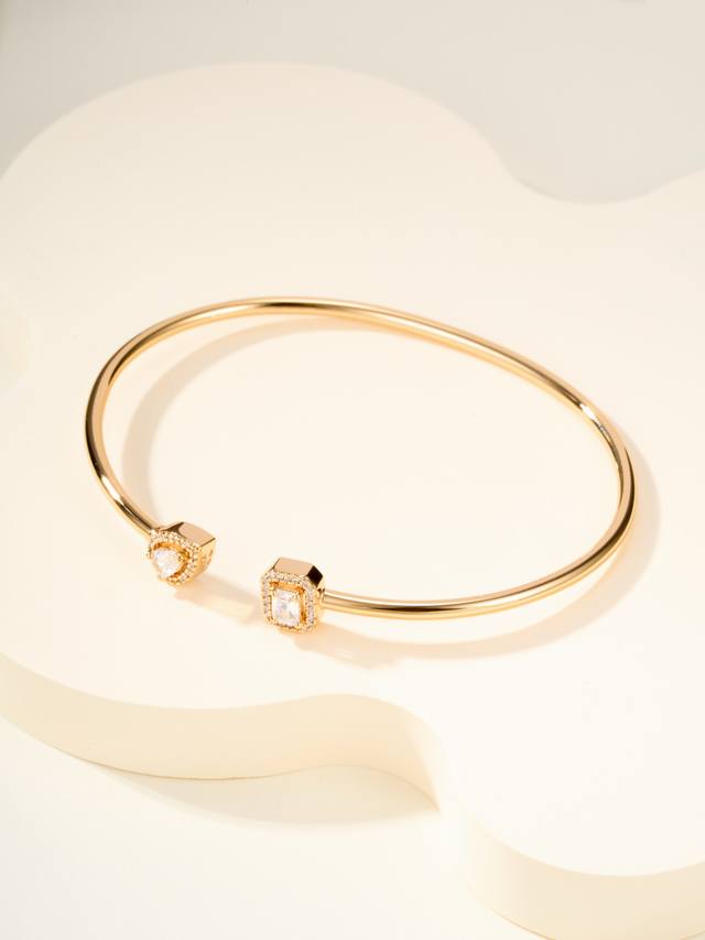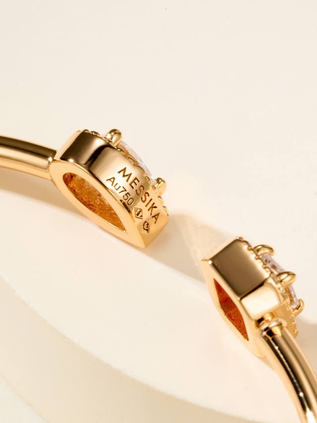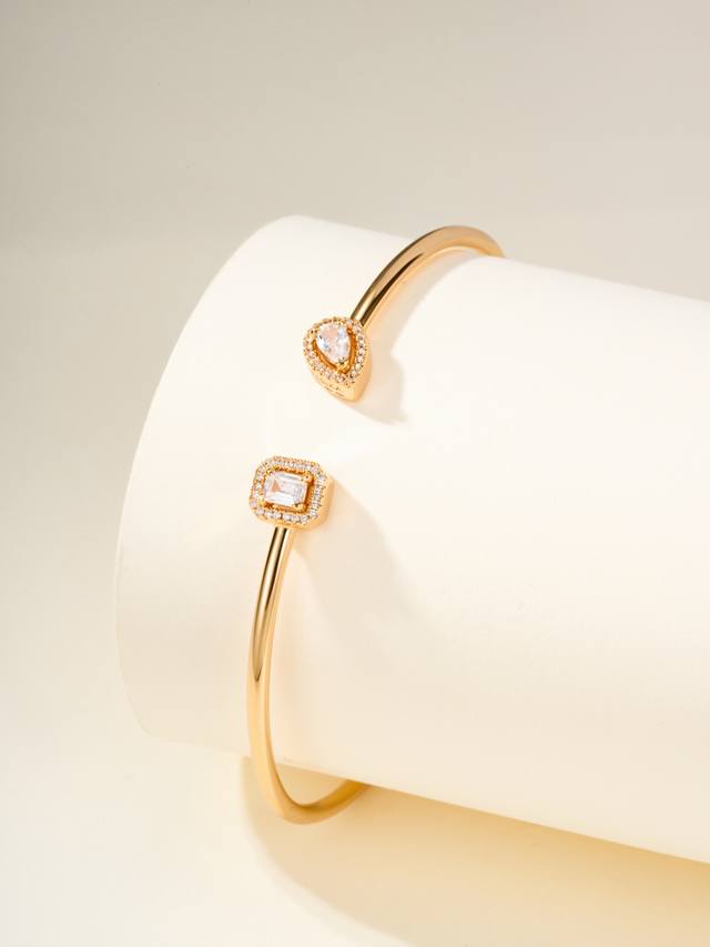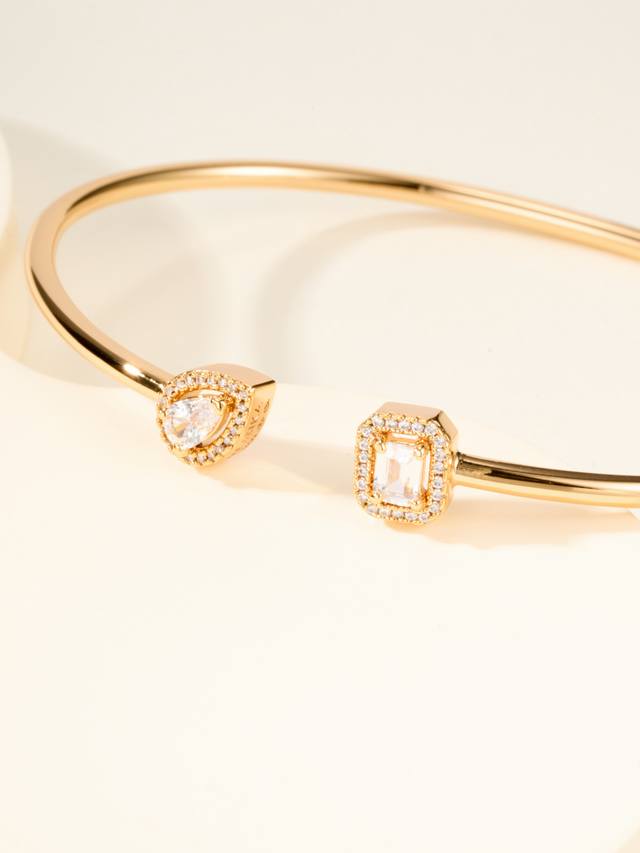Messika My Twin bracelet, size 17. "My Twin" symbolizes "my twins" or "you and me." The bracelet is crafted from a combination of pear-shaped and emerald-shaped diamonds. The pear-shaped bracelet's soft and flowing lines represent a gentle side, while the emerald-shaped bracelet's straight, masculine lines represent a brave side.