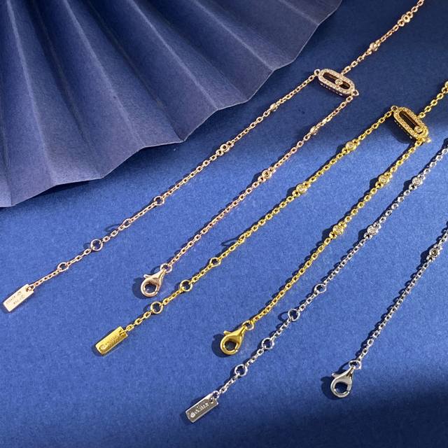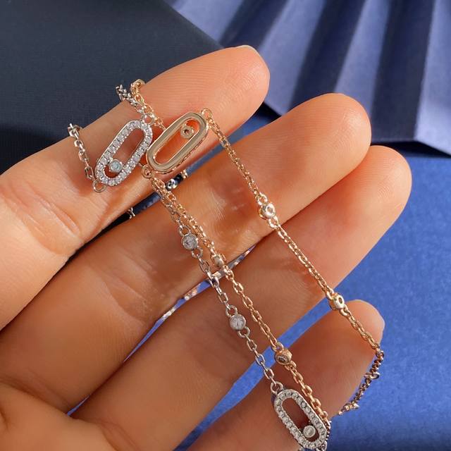 Messika Korean fashion Instagram oval full diamond smart sliding single diamond bracelet brass material gold, silver and rose 3 colors weight approximately 4G bracelet length approximately 16cm + 1cm + 1cm + 1cm + 2cm