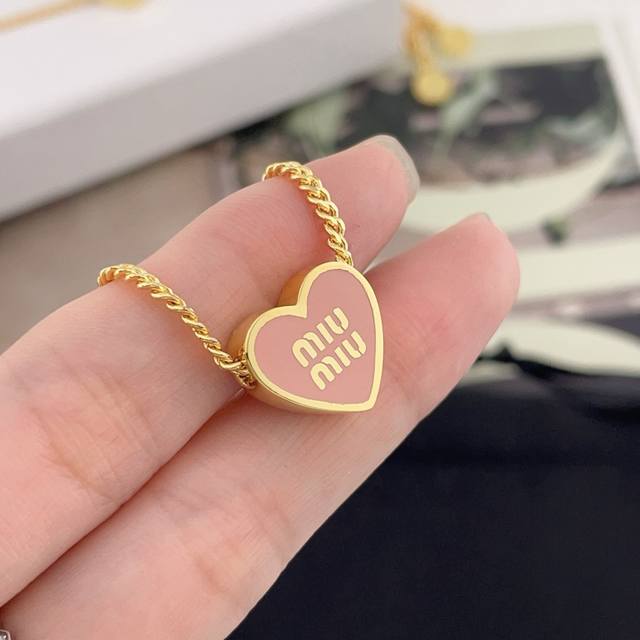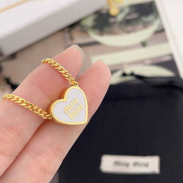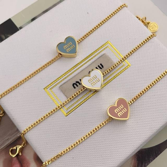Necklace and Bracelet - Our Mu Heart Bracelet and Necklace Z 3750, a hot-selling heart design! Limited stock available! First come, first served! Available in pink, white, and blue! The rejection rate is extremely high; out of 500 hearts made, less than 200 were shipped! The heart shape features the classic logo in the center with enamel filling, and a specially customized round disc-shaped pendant. Minimalism isn't just about simplicity; every curve and line is meticulously designed to create an exceptionally comfortable and breathable visual aesthetic! A must-have for fashionistas, versatile and flattering, stylish and avant-garde, feminine yet cool!