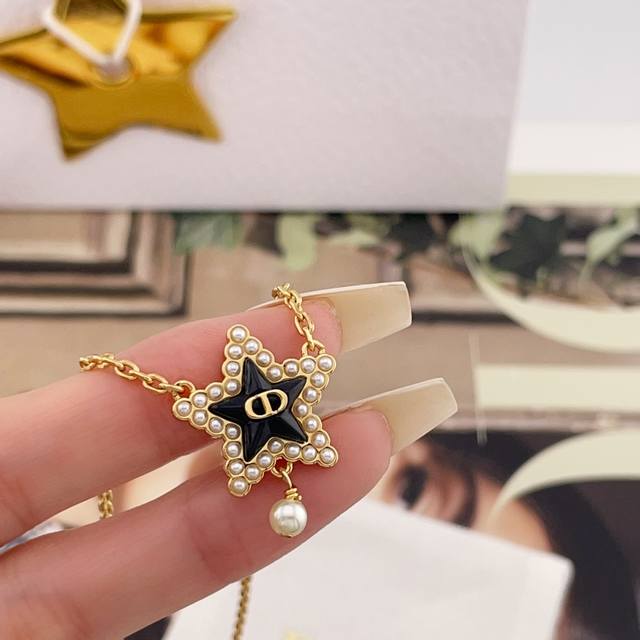 Necklace and bracelet, our product, star pendant bracelet and necklace, Z 4700, in stock, first come first served, large quantities inquiries welcome! 2025 early spring Cruise latest style! Super beautiful, looks good with anything, five-pointed star resin, specially customized night sky blue, not black! Look for our products! Consistent with the specific color beads of the Z batch, not the pure white kind, but specially customized bluish beads. Look for consistent Z batch customization, must use customized pearls, white pearls look very fake, retro metallic tone adds a touch of coolness, the lettering is even more delicate than the Z batch, simply too perfect, must get one, very high quality, highly recommended for keeping one for yourself [witty][witty] Look for our products and you'll save 4700