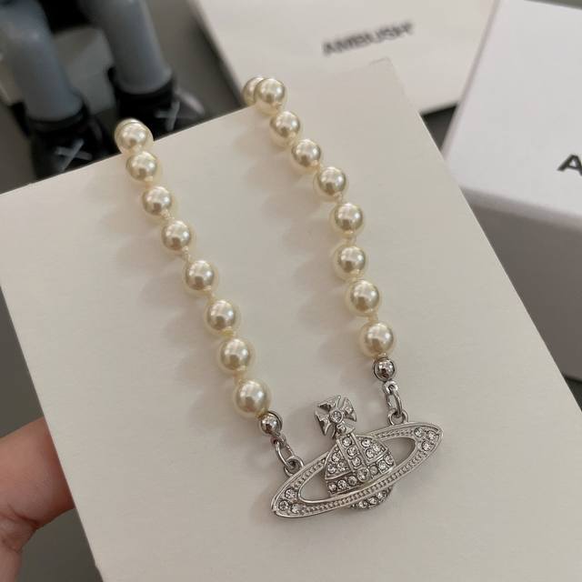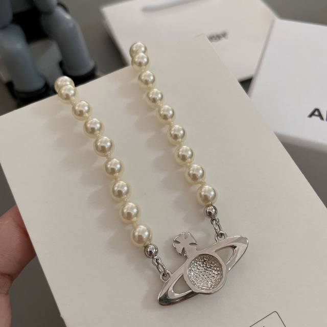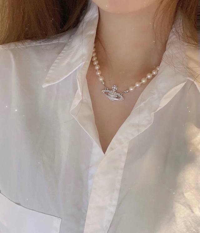 Vivienne Westwood Baby, what is Happy Planet? Come on, this is Happy Planet! The stunning Saturn Queen Mother Pearl Set! Queen Mother necklace and bracelet, highly recommended, you must buy the whole set, you can't go wrong with this! The pure crown is a classic symbol, the sparkling Saturn rings outline the future, opening a new encounter with the future amidst the flowing light! The diamonds on Saturn are also custom-made rhinestones; you can completely feel its texture, feel, and luster when you hold it. The rhinestone embellishments on the Saturn design add a lot of cool and fashionable charm, making it punk yet a little girly, attracting a group of fashion fans! It's really gorgeous, both sweet and edgy, pure and alluring! Love at first sight, absolutely the king of "practical + high-end," an absolute must-have, an absolute treasure, a timeless pearl necklace and bracelet