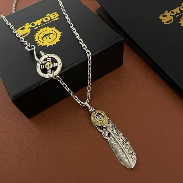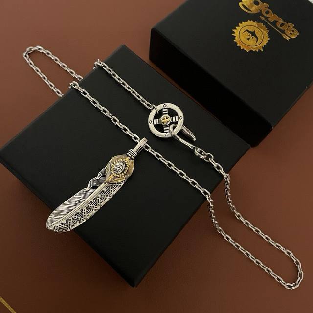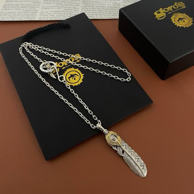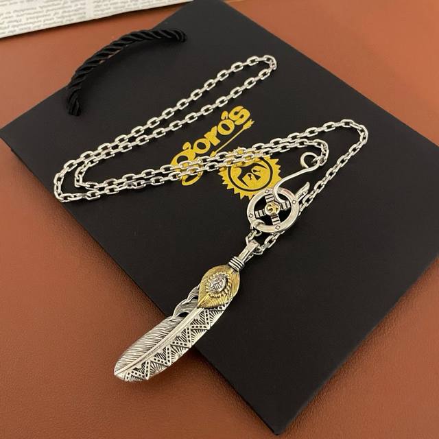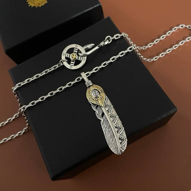 New Arrival: Goro's Takahashi Feather Pendant, Classic Takahashi Necklace, Top-Tier Version. Exclusively photographed, targeting the high-end market, absolutely different from ordinary versions! Product details in the pictures are identical to the original! Original craftsmanship, exquisite quality, purely handmade. Authentic mold, trendy and fashionable, a must-have for men and women, suitable for couples, rock punk, Thai silver style, retro elements, trendy and versatile. Same style as the official website.