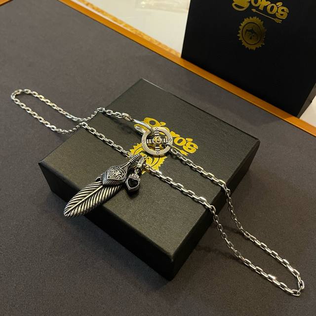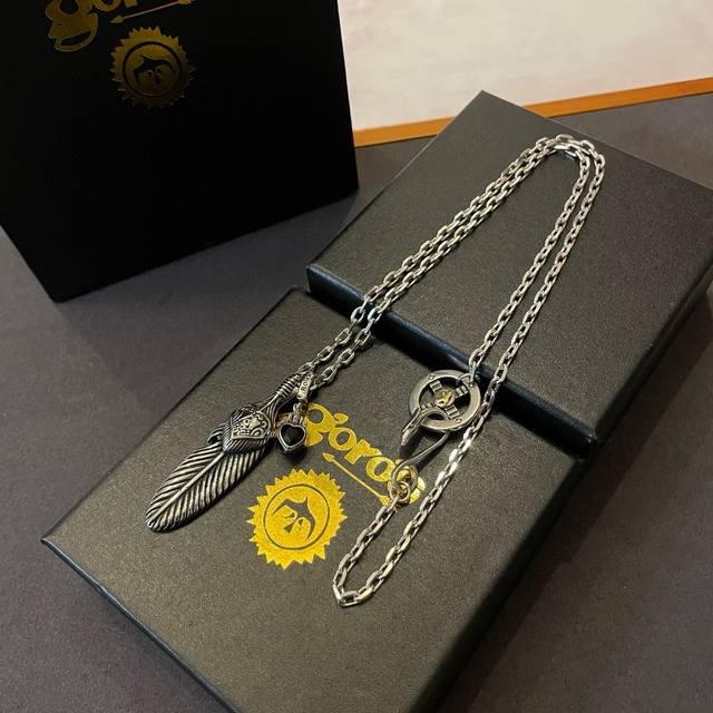 New arrival! Goro's Takahashi Goro double feather pendant, the top-tier version of the classic Takahashi necklace. Look for exclusive photography, targeting the high-end market, and absolutely different from regular versions! Product details in the pictures are consistent with ZP! Original craftsmanship, exquisite craftsmanship, and pure handcrafted quality. Authentic molded, trendy and fashionable, a must-have for both men and women. Couples' choice, rock punk Thai silver style with retro elements, trendy and versatile. Same as the official website.