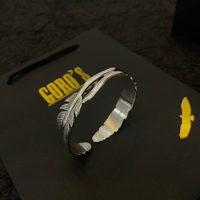 New arrival! Goro's Takahashi Goro Feather Open Bracelet. This premium version features exclusive photography, specifically targeted at the high-end market. It's completely different from standard models! The product details in the images are identical to the ZP! Handcrafted with exquisite craftsmanship and quality, this genuine product is a must-have for both men and women. This couple's model features a rock-punk Thai silver style with retro elements, making it a versatile and trendy choice. Also available on the official website.
