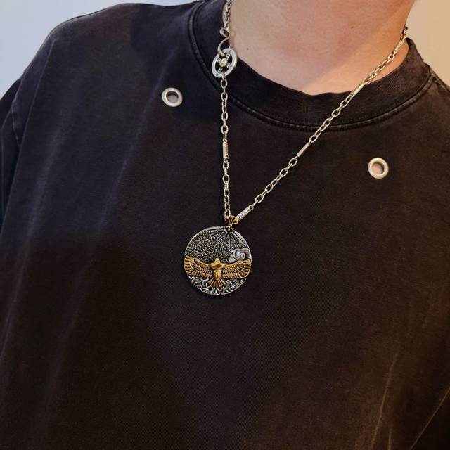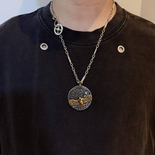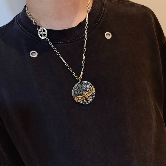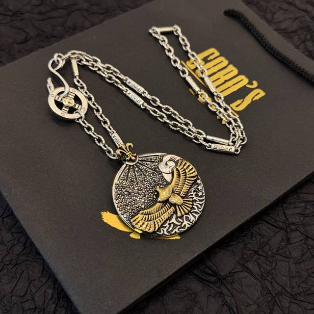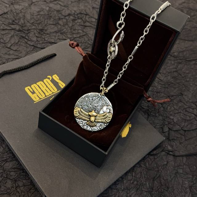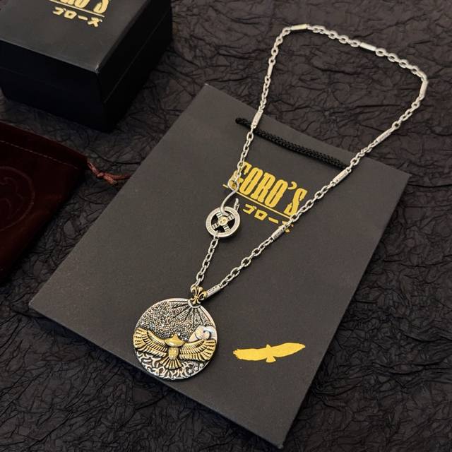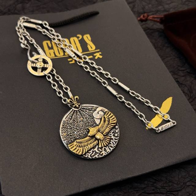 New arrival: Goro's Takahashi Goro Golden Eagle Round Necklace, a top-tier edition, exclusively photographed, targeting the high-end market, a popular item on Kuaishou, Instagram, and Xiaohongshu, absolutely different from the regular version! The product details in the pictures are consistent with the ZP! Original craftsmanship, exquisite craftsmanship, and pure handcrafted quality. Authentic molded, trendy and fashionable, a must-have for both men and women. A couple's pair, the same style with rock-punk Thai silver, retro elements, and a versatile trend. Also available on the official website.