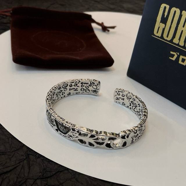 New arrival: Goro's Takahashi Goro open bracelet. This premium version features exclusive photography, targeting the high-end market and is completely different from standard models! Product details in the images are identical to ZP! Handcrafted with refined craftsmanship and quality, this genuine product is a must-have for both men and women. This couple's model features a rock-punk Thai silver style with retro elements, making it a versatile and trendy choice. Also available on the official website: