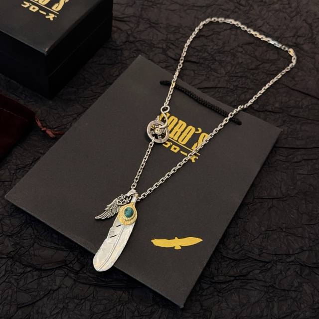 New arrival: Goro's Takahashi Goro pine pine feather necklace, top-of-the-line edition, exclusively photographed, targeting the high-end market, popular on Kuaishou, Instagram, and Xiaohongshu, absolutely different from the regular version! The product details in the pictures are consistent with the ZP! Original craftsmanship, exquisite craftsmanship, and pure handcrafted quality. Authentic molded, trendy and fashionable, a must-have for both men and women. Suitable for couples, rock punk Thai silver style, retro elements, trendy and versatile, the same official website