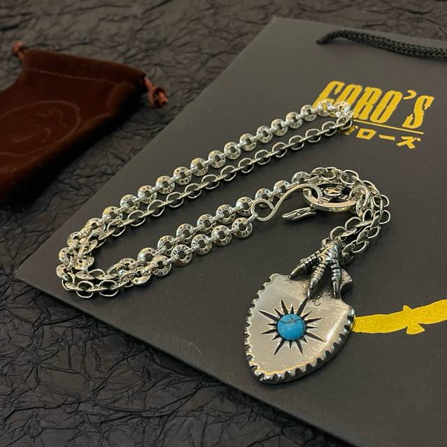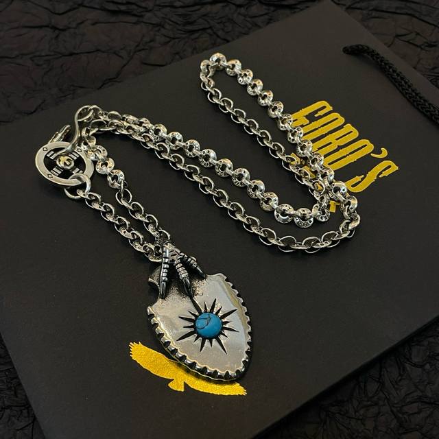 New arrival: Goro's Takahashi Goro turquoise eagle claw shield pendant, Takahashi Goro classic round buckle necklace, top-of-the-line version, look for exclusive photography, focusing on the high-end market, popular on Kuaishou, Instagram, and Xiaohongshu, absolutely different from the ordinary version! The product details in the pictures are consistent with Zp! Original production process, exquisite craftsmanship, pure handmade quality ~ Authentic mold opening, trendy and fashionable, a must-have for men and women, suitable for couples, rock punk Thai silver style, retro elements, trendy and versatile, the same as the official website