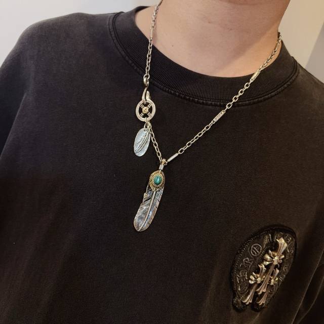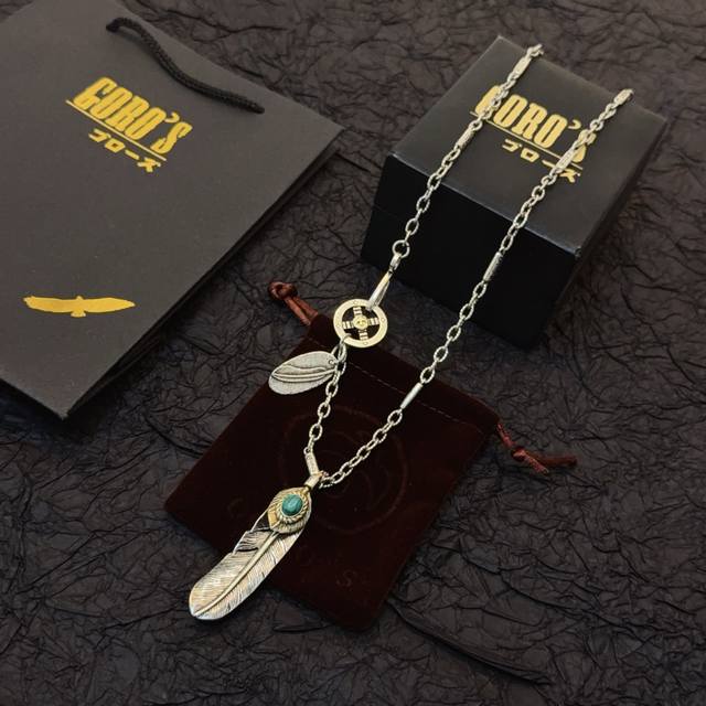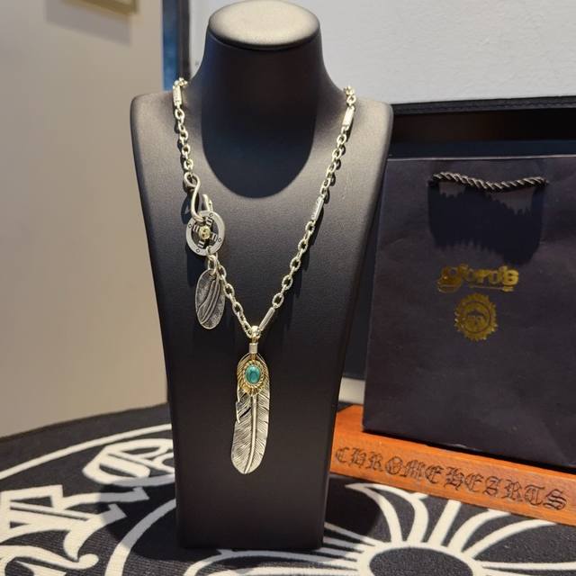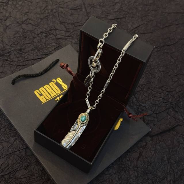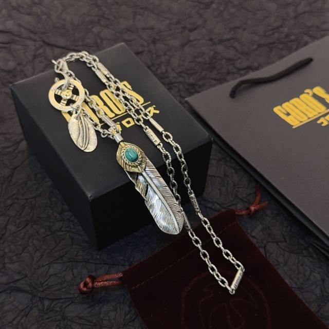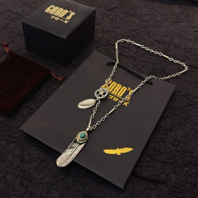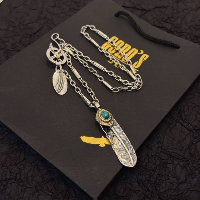 New Arrival: Goro's Takahashi Goro Turquoise Feather Necklace, Top-Tier Version, Exclusively Photographed, Targeting the High-End Market, Popular on Kuaishou, Instagram, and Xiaohongshu, Absolutely Different from Ordinary Versions! Product Details in Pictures Match the Original Product! Original Craftsmanship, Exquisite Quality, Purely Handmade~ Authentic Mold, Trendy Fashion Must-Have, Suitable for Men and Women, Couple Style, Rock Punk, Thai Silver Style, Retro Elements, Trendy and Versatile, Same Style as Official Website