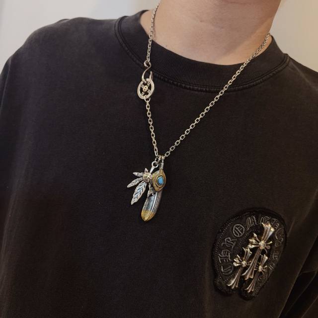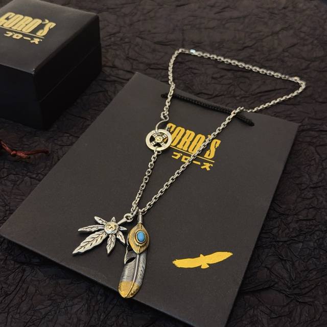 New arrival: Goro'S Takahashi Goro Turquoise Feather Necklace! Top-tier version, exclusively photographed, targeting the high-end market, absolutely different from ordinary versions! Product details in the pictures are consistent with the original! Original craftsmanship, exquisite quality, purely handmade~ Authentic mold, trendy and fashionable, a must-have for men and women, suitable for couples, rock punk, Thai silver style, retro elements, trendy and versatile, same style as the official website.