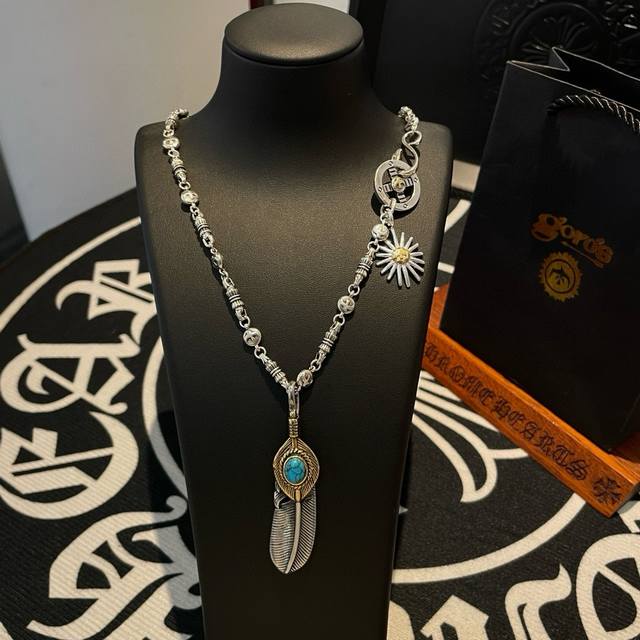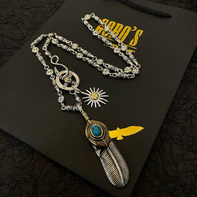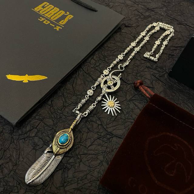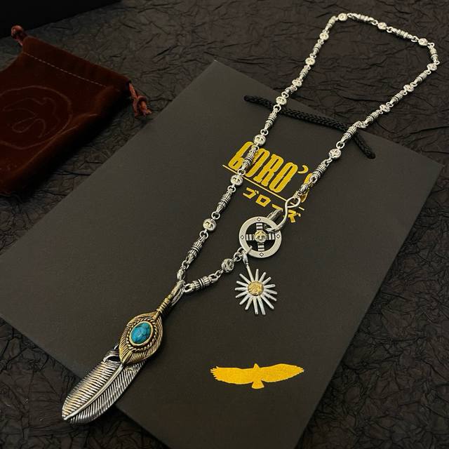 New Arrival: Goro's Takahashi Goro Turquoise Feather Pendant, Takahashi Classic Eagle Necklace, Top-Tier Version, Exclusive Photography, Targeting the High-End Market, Popular on Kuaishou, Instagram, and Xiaohongshu, Absolutely Different from Ordinary Versions! Product Details in Pictures are Consistent with Batch Z! Original Craftsmanship, Exquisite Quality, Purely Handmade ~ Authentic Mold, Trendy Fashion Essential, Unisex, Couple Style, Rock Punk, Thai Silver Style, Retro Elements, Trendy and Versatile, Same Style as Official Website