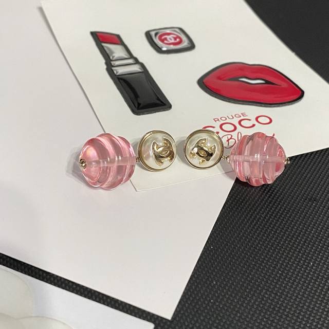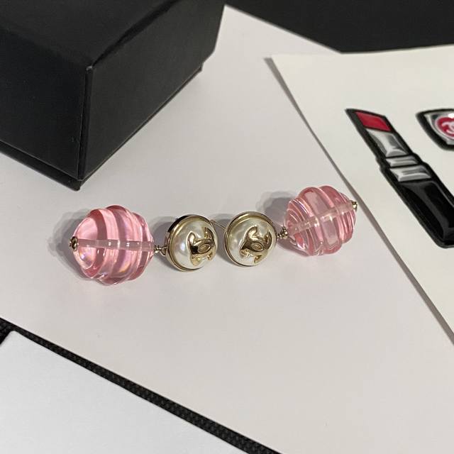 New Chanel Pink Crystal Letter Pearl Earrings DDD Today's New Arrival* 26K New 3D Gold Double C Button Pink Crystal Earrings, the exaggerated style is perfect for taking photos and creating a stylish look. The translucent pink teardrop beads are so beautiful and delicate. Sisters who like this unique fashion sense must buy it DDD