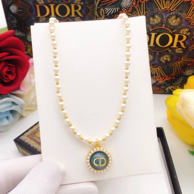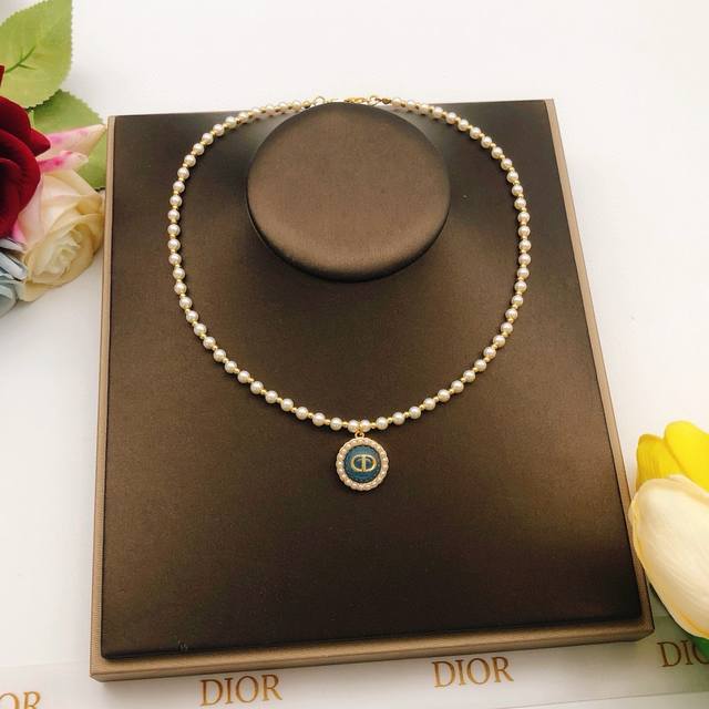 / No. Dxl0231 Dio* latest pearl necklace blue uniform Zp brass material