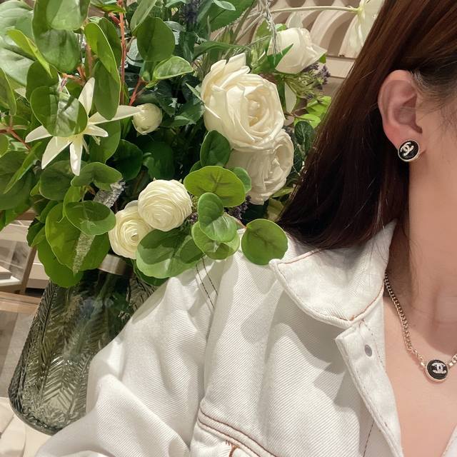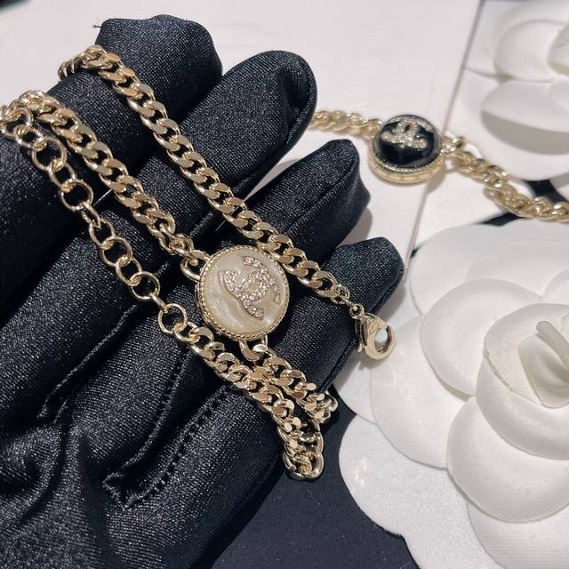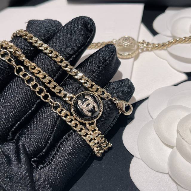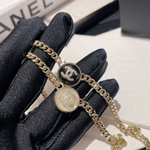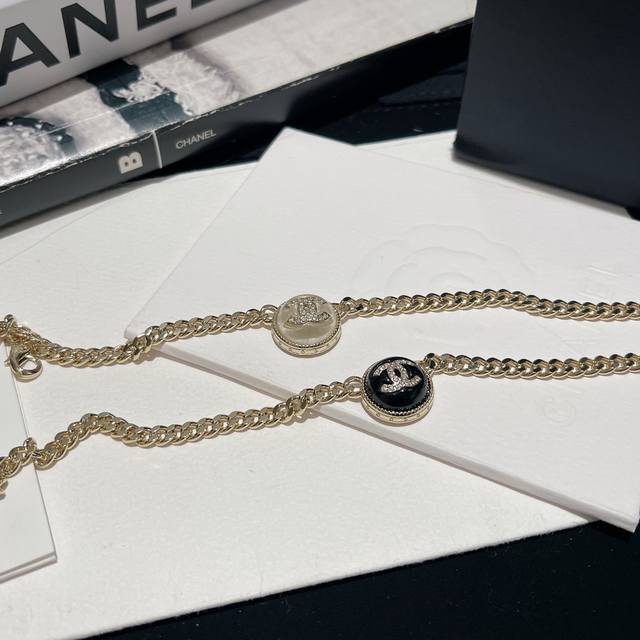 Xiang 22 Early Spring Black and White Ball Button Short Chain