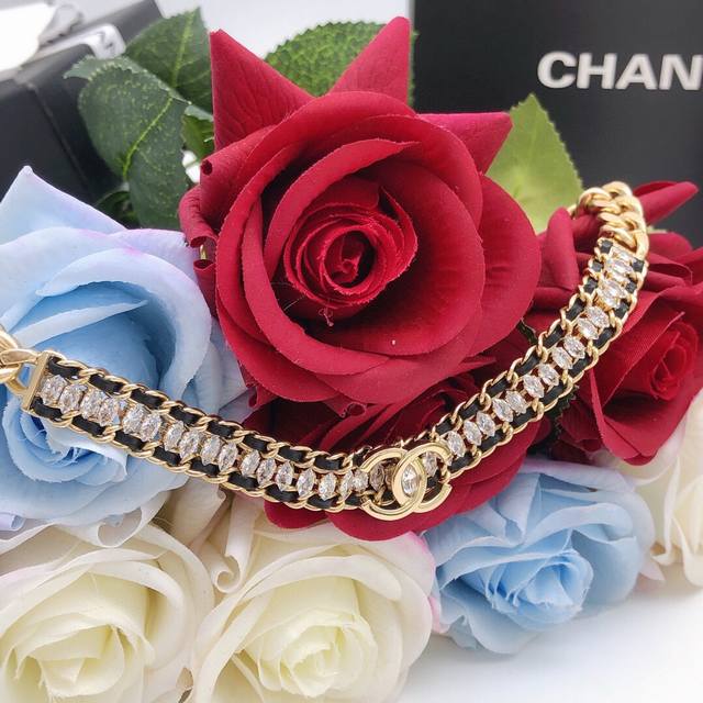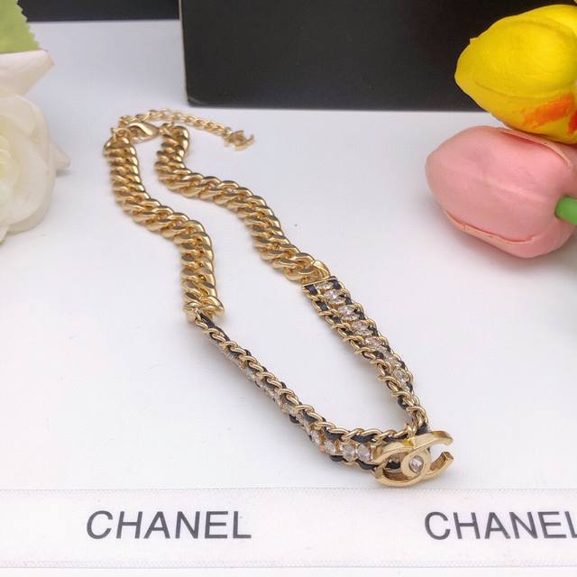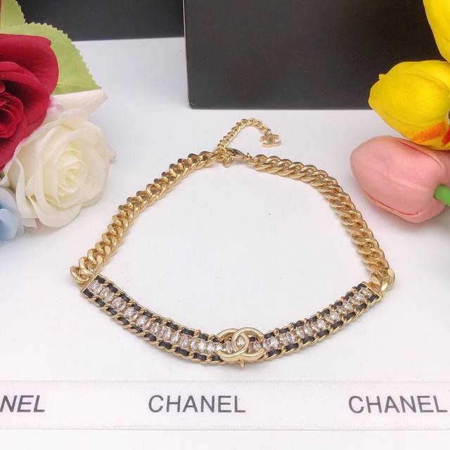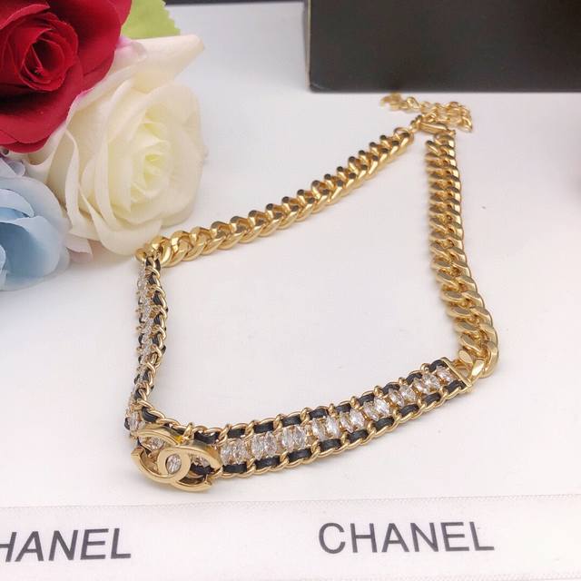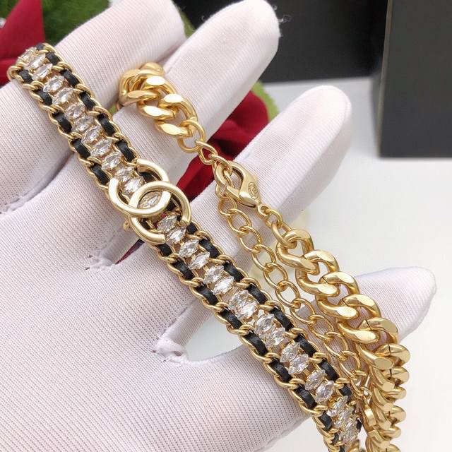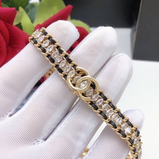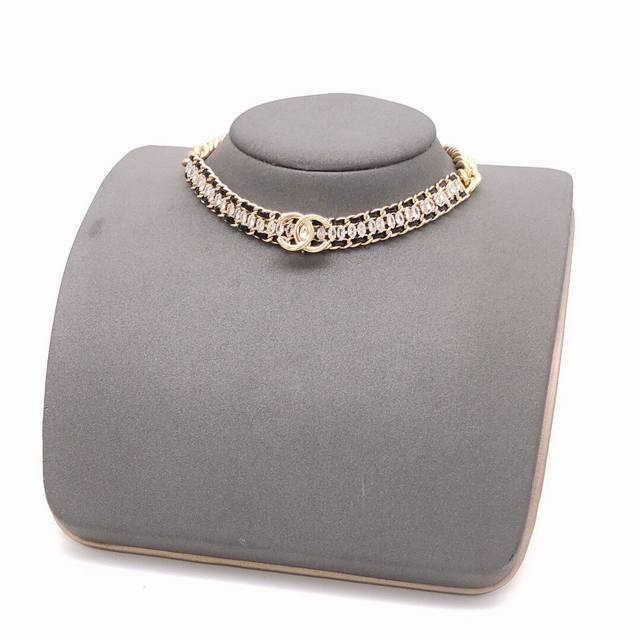 New leather braided diamond double C necklace Choker
