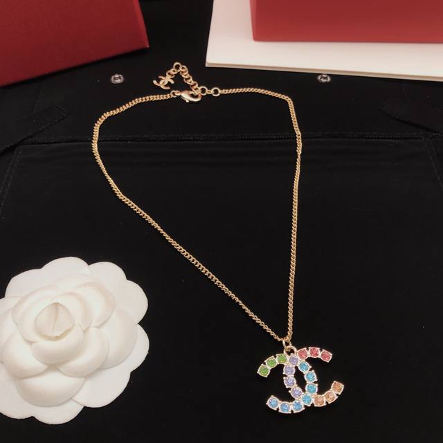 Ch*Nel latest color diamond double C necklace consistent Zp brass material