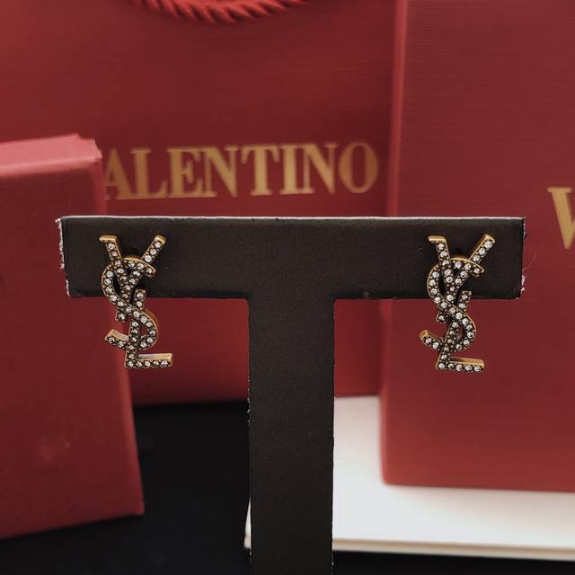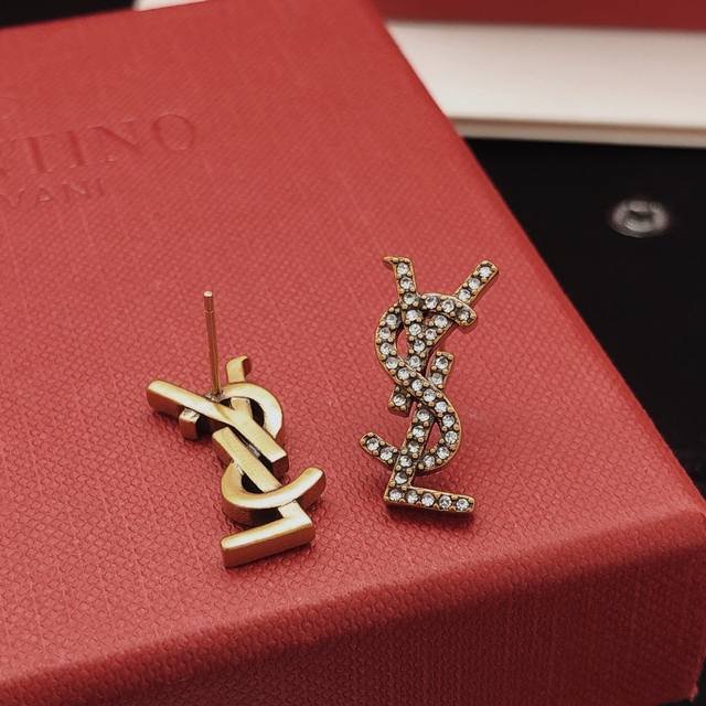 / No. Yed0085 Antique Gold Yvessaintlauren* Latest Mini Letter Diamond Earrings C