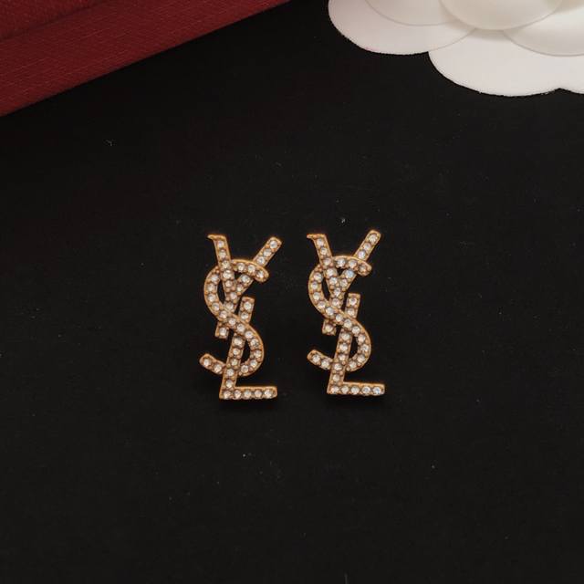Yvessaintlauren* Latest Mini Letter Diamond Earrings Consistent Zp Brass Material