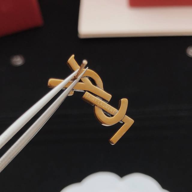 No. Yed0085 Antique Gold Yvessaintlauren* Latest Mini Letter Diamond Earrings C