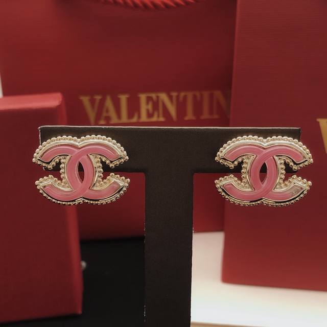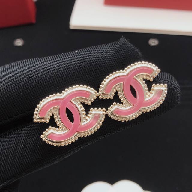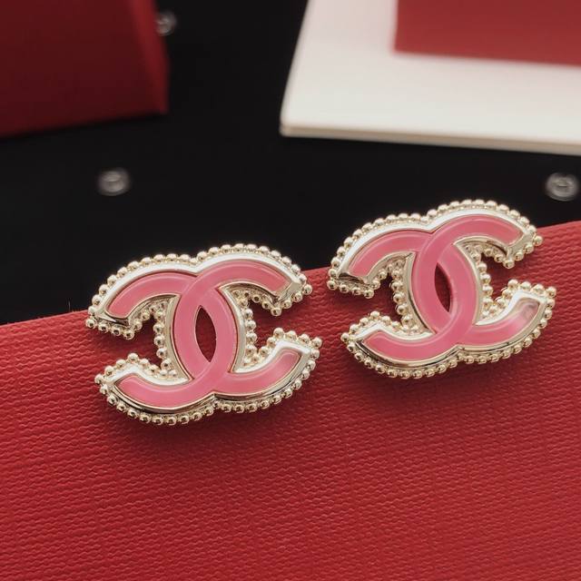 / No.Xed0063 Ch*Nel latest pink double C earrings consistent Zp brass material DDD