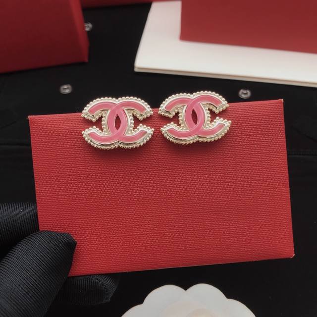 Ch*Nel latest pink double C earrings consistent Zp brass material