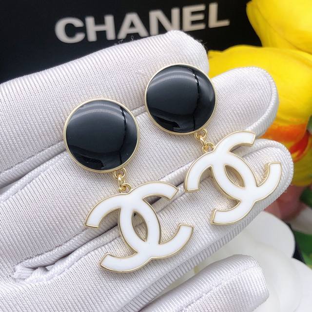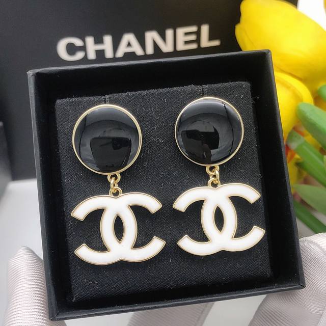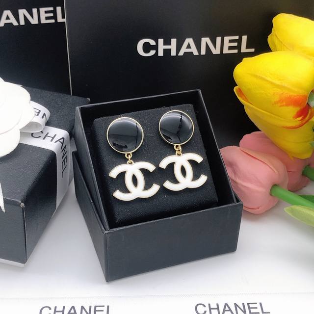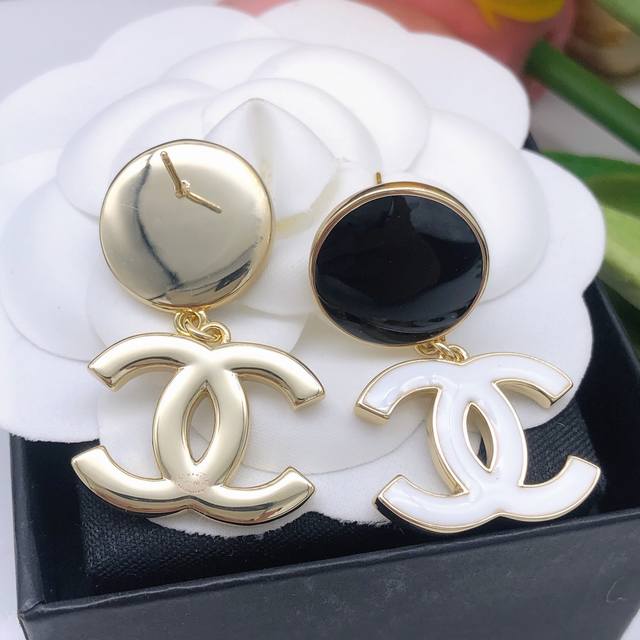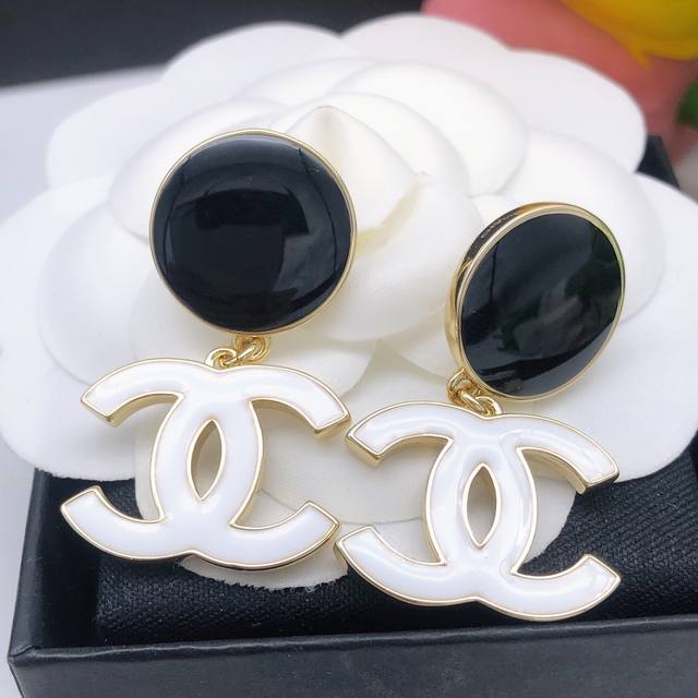 / No.Xed0554 Double C oil drop black and white earrings DDD