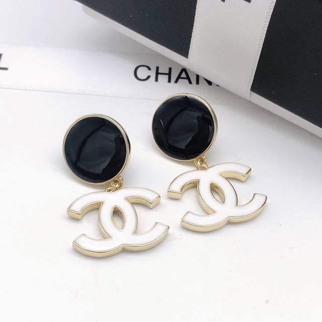 No.Xed0554 Double C oil drop black and white earrings DDD