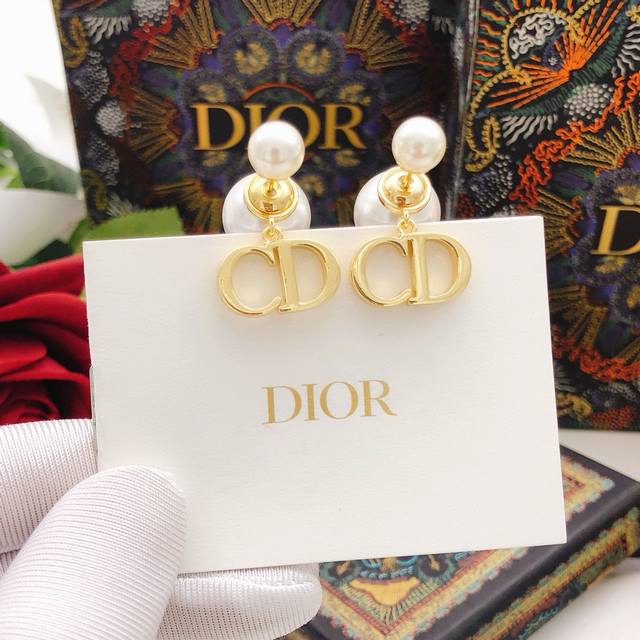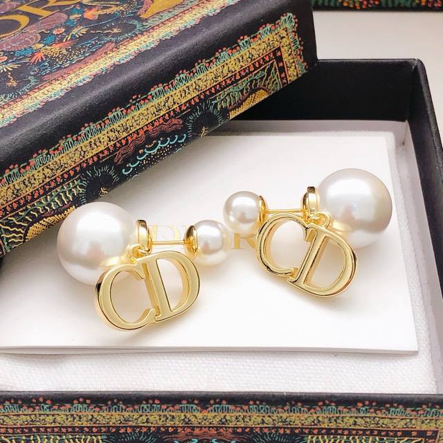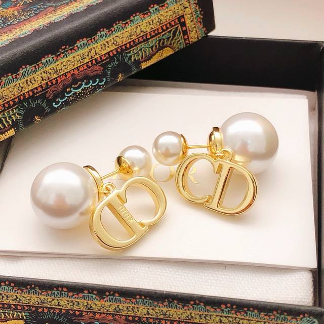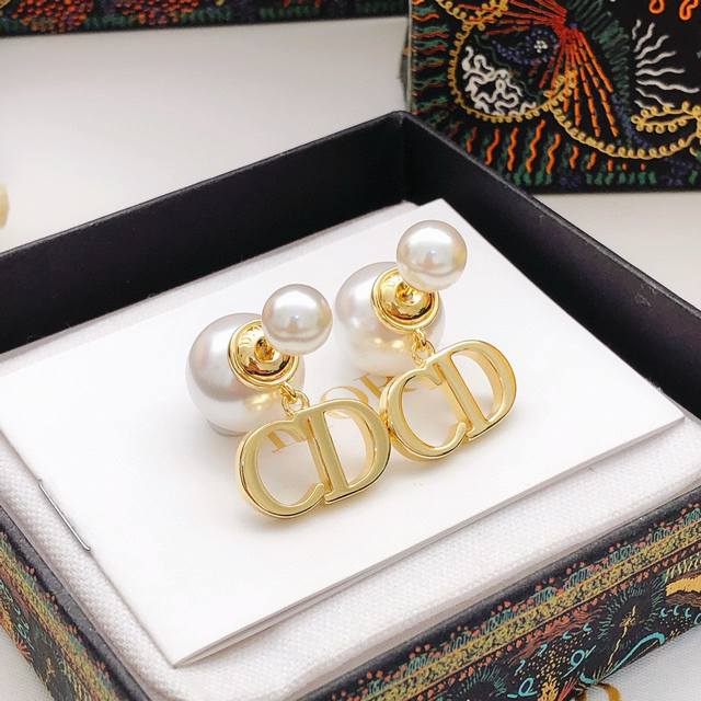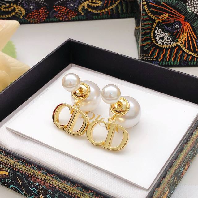 Dio*Latest model large and small pearl pendant Cd smooth earrings consistent Zp brass material