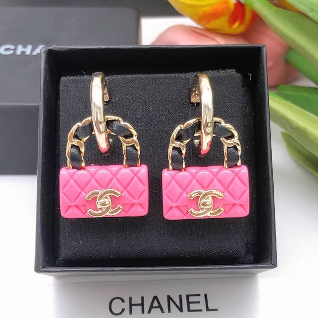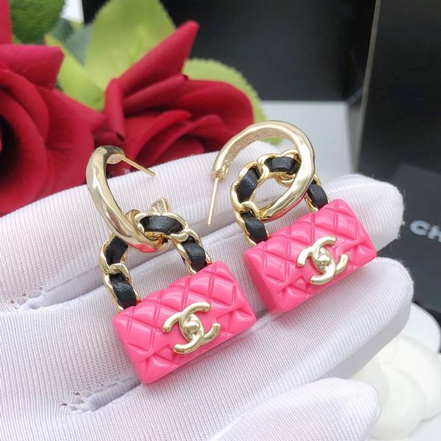 Ch*Nel Xiao Chanel double C bag earrings red, high-end quality, the same material as the counter, real brass, ion plating, 925 silver needle, exclusive real photos, exquisite workmanship, heavy version, super fairy and beautiful one, super careful workmanship without loopholes, comparable to Zp buy is to earn