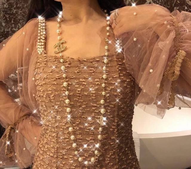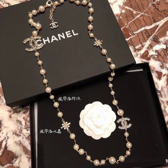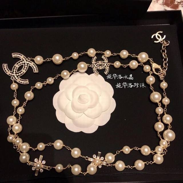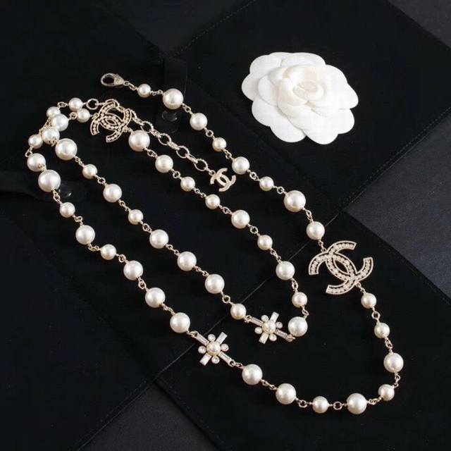 Flower pearl long necklace Cross flower long necklace, fairy beauty socialite Baifumei must-have single item Focus on the versatile necklace can be wrapped around the double layer wear on the importance of accessories