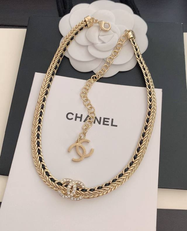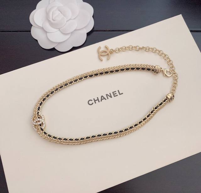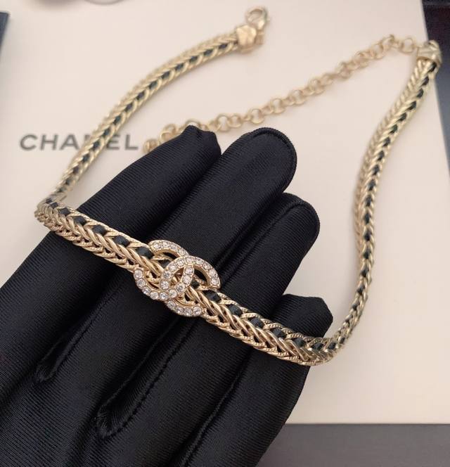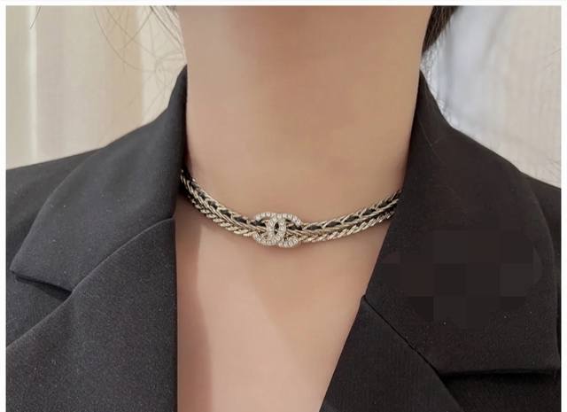 / Old small Ch*Nel new black leather necklace consistent Zp brass material DDD