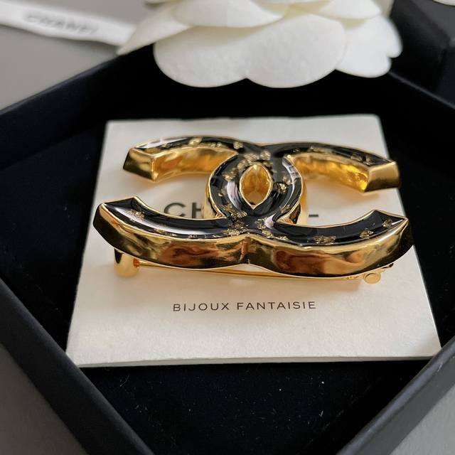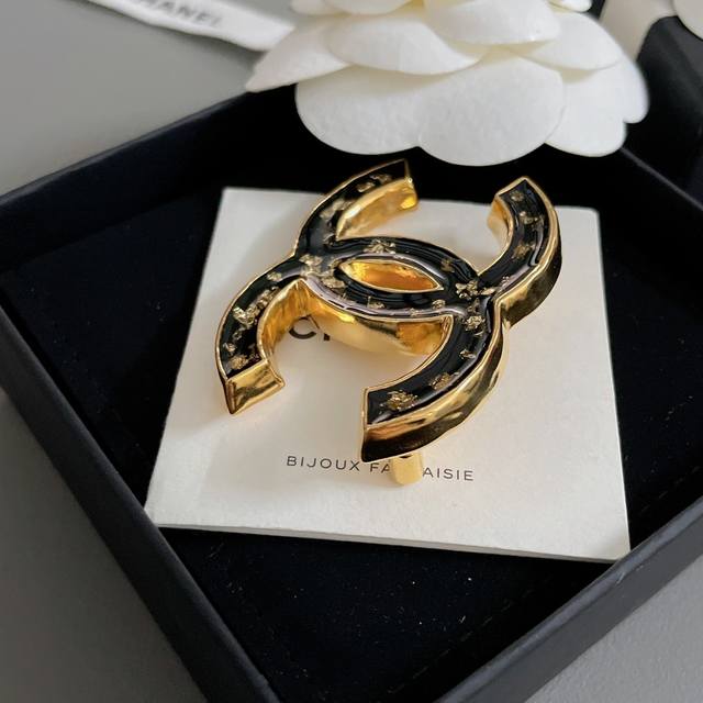 Our gold foil double C brooch Z 5300 is destined to become a classic! A very vintage-style brooch! Perfect for autumn and winter, it goes so well with autumn and winter outfits. The classic black and gold combination, with gold foil encased in transparent dripping oil, exudes a sense of wealth! An exquisite design, the more you look at it, the more you love it; it becomes more and more beautiful with age, a classic piece that will definitely stand the test of time!