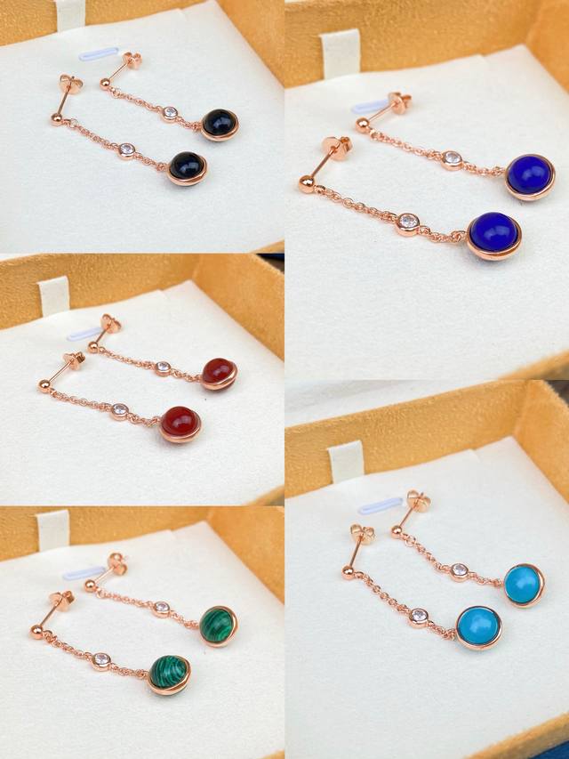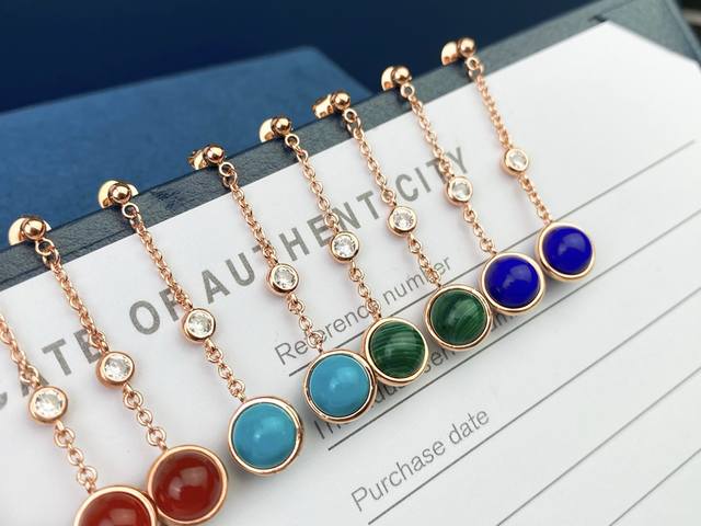 Piaget earrings are paired with black agate, carnelian, malachite, turquoise and lapis lazuli round beads, and are inlaid with beautiful diamonds. A dazzling diamond is adorned next to the gemstone round beads, blooming with gorgeous brilliance. The craftsmanship is exquisite, using sub-gold electroplating 18K rose gold technology ~ 925 silver needle anti-allergic [naughty] goddess must-have batch