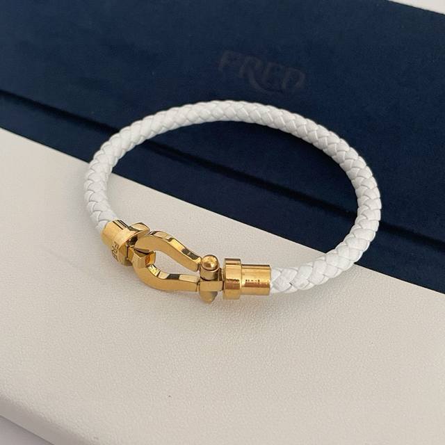 Popular Fred leather bracelet, polished rose gold horseshoe clasp bracelet, classic and versatile, a must-have item for influencers and fashionistas. Stylish and exquisite, 1:1 custom-made, thickened 18K electroplating process, a trendy and cool couple's bracelet ~ the effect is very versatile! !