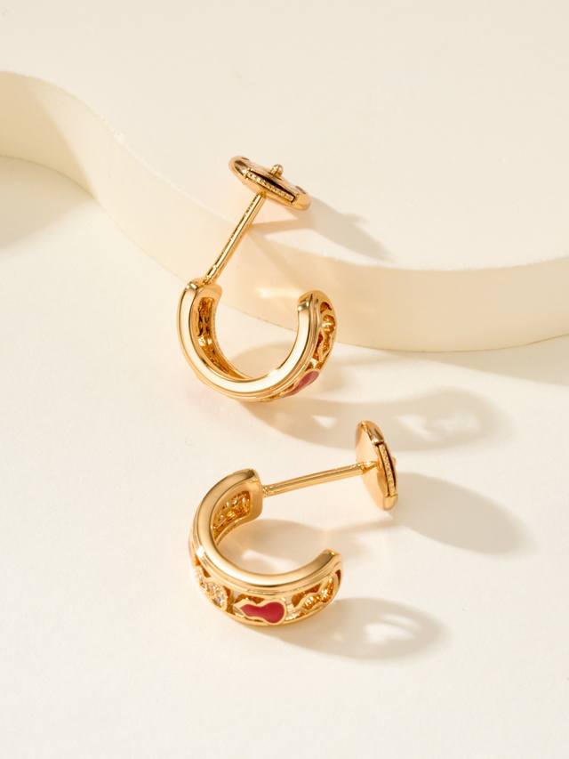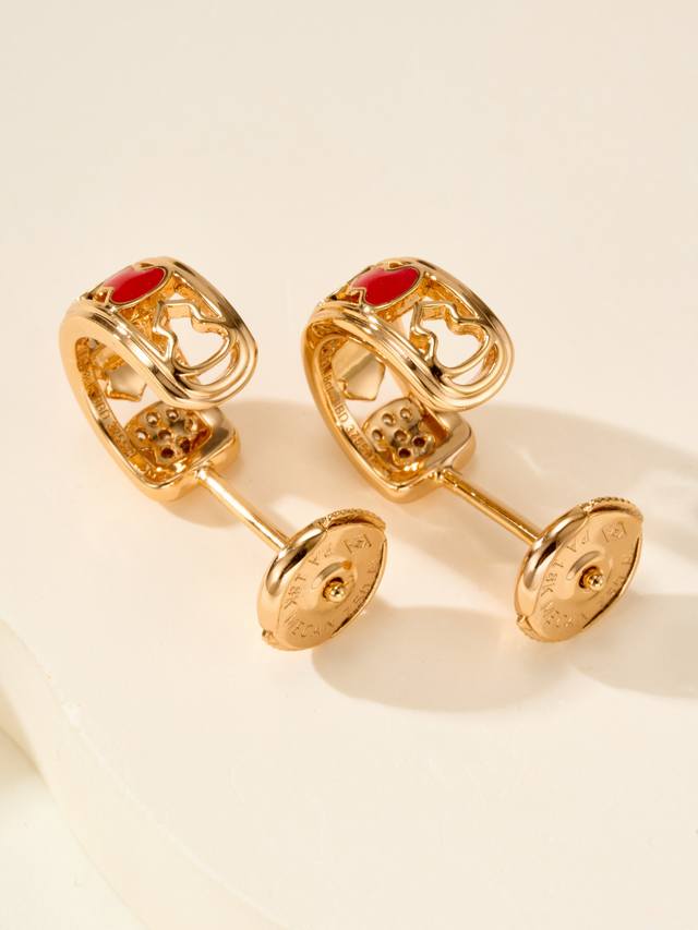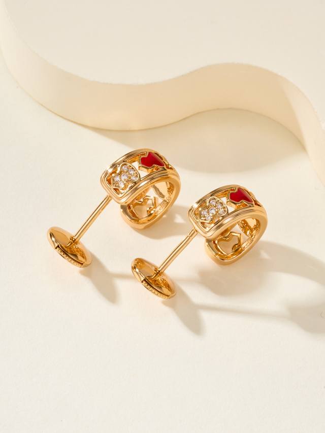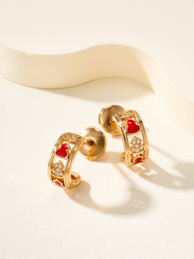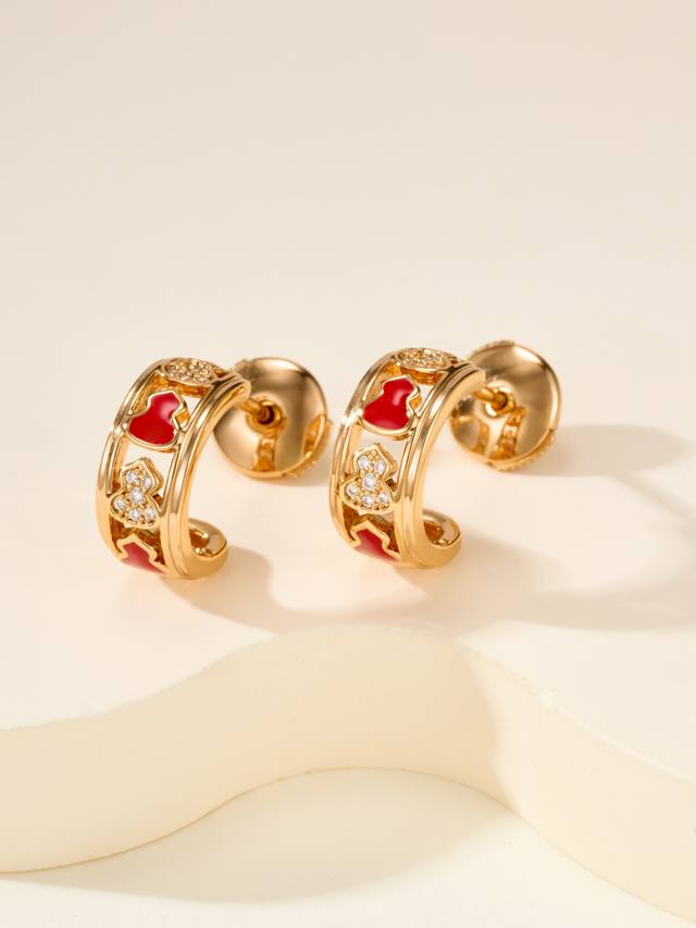 Qeelin Wulu Eternity rose gold diamond gourd earrings. The classic gourd motif paired with dazzling diamonds symbolizes happiness and good fortune. Double-layered earrings create a layered look and enhance the look with a sophisticated touch. The hollow design, accented with diamonds, showcases exquisite craftsmanship. The warm rose gold hue adds a soft radiance, complementing the overall look.