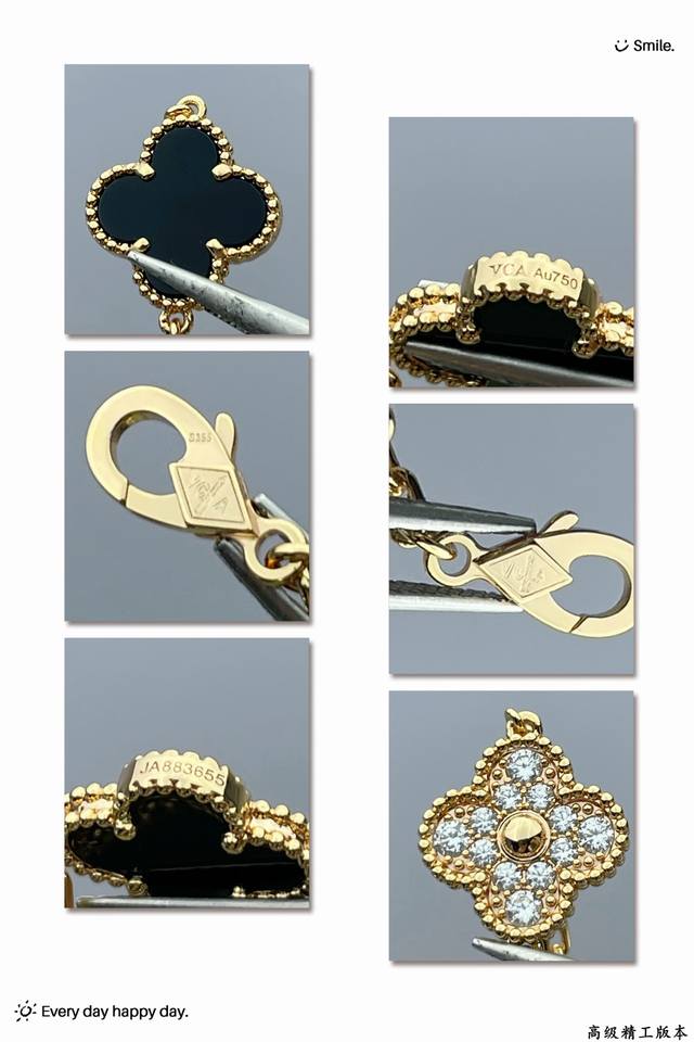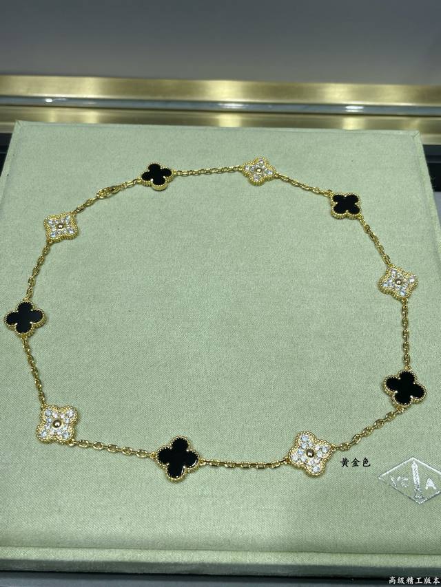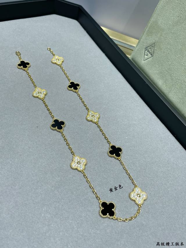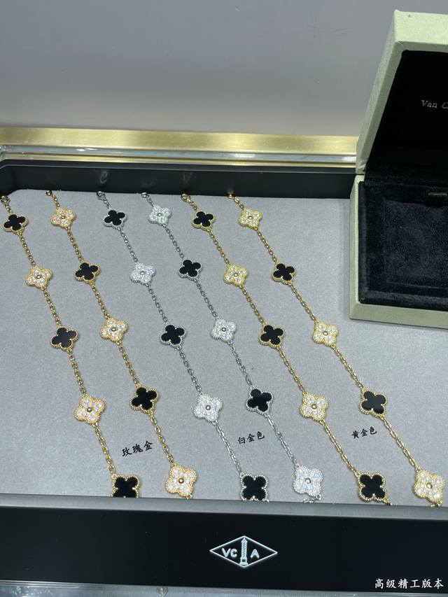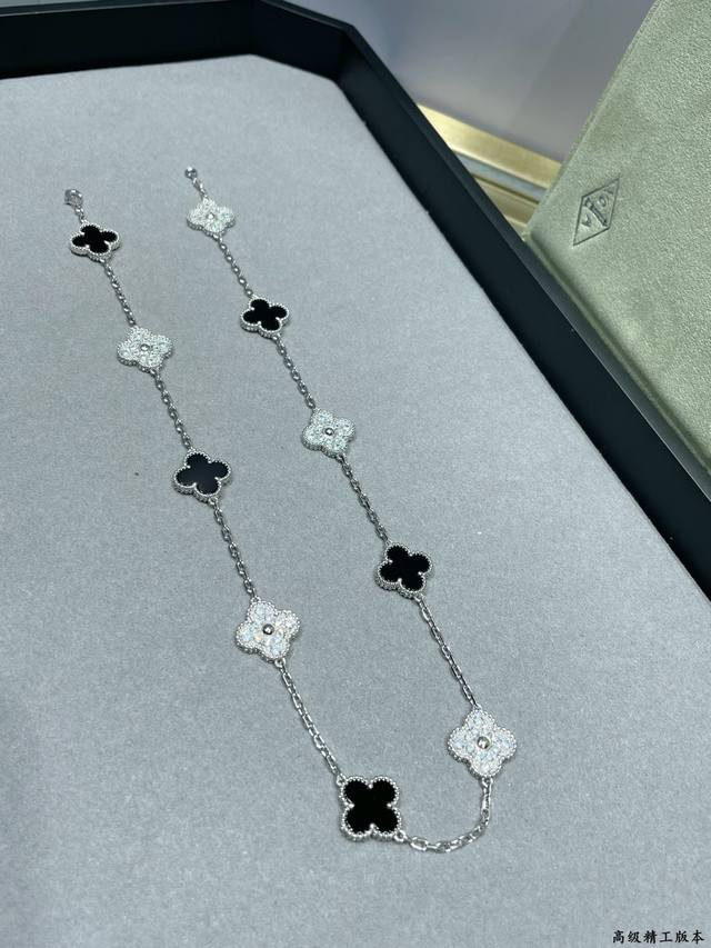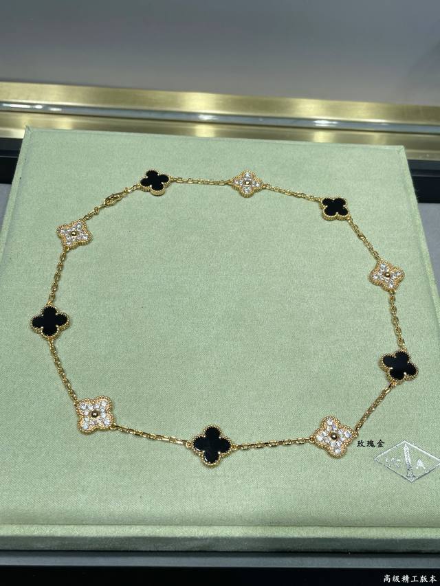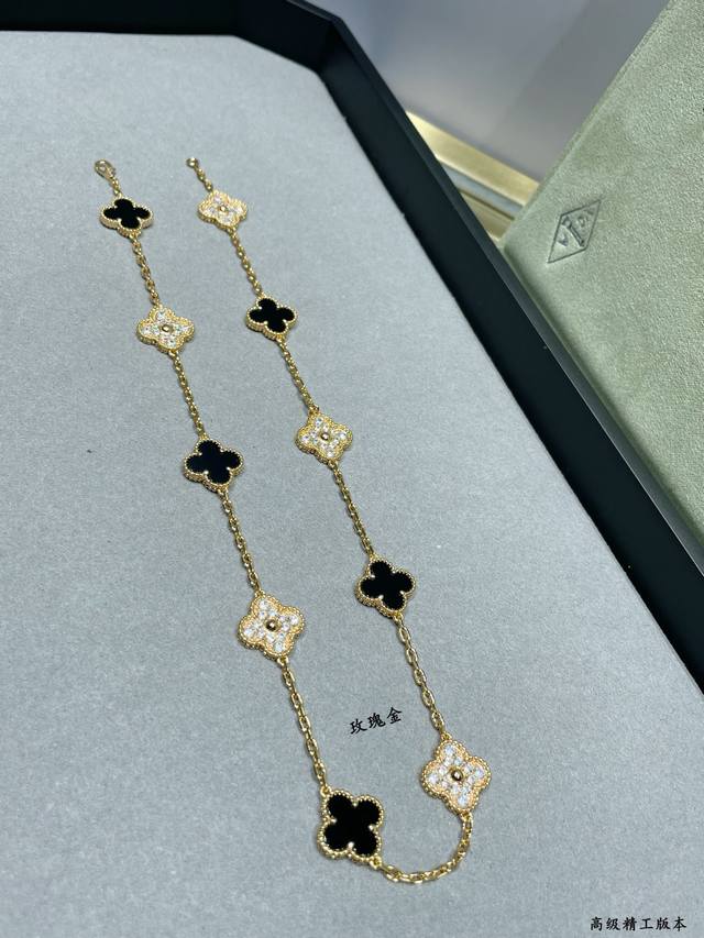 Rose Gold: 925 White Gold Silver Chain VCA Premium Black Shell Interval Diamond Ten-Flower Four-Leaf Clover Necklace. This Cleef & Arles Four-Leaf Clover collection features dynamic designs, flowing lines, and is easy to wear. It offers endless possibilities for matching, bringing a rich and diverse style to every woman's life.